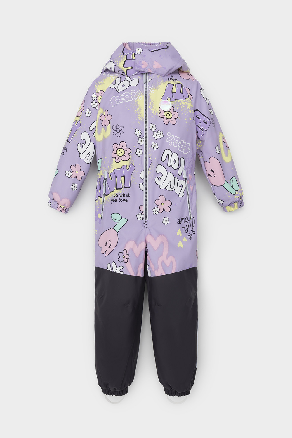 Демисезонный комбинезон для девочки с утеплителем SEE, 120 г/м2. Выполнен из мембранной ткани с дополнительной тефлоновой обработкой. Данный вид обработки предохраняет изделие от загрязнения и лучше отводит влагу. Подклад из 100% полиэстера. Для удобного одевания комбинезон застёгивается на удлинённую молнию с защитой подбородка. Капюшон не снимается, по верхнему краю есть эластичная вставка. По низу рукавов и брючин, а также на спинке изделия предусмотрены эластичные резинки для лучшего прилегания. Для фиксации комбинезона используются съёмные силиконовые штрипки. Во всех изделиях верхнего ассортимента для безопасности ребёнка предусмотрены светоотражающие элементы.