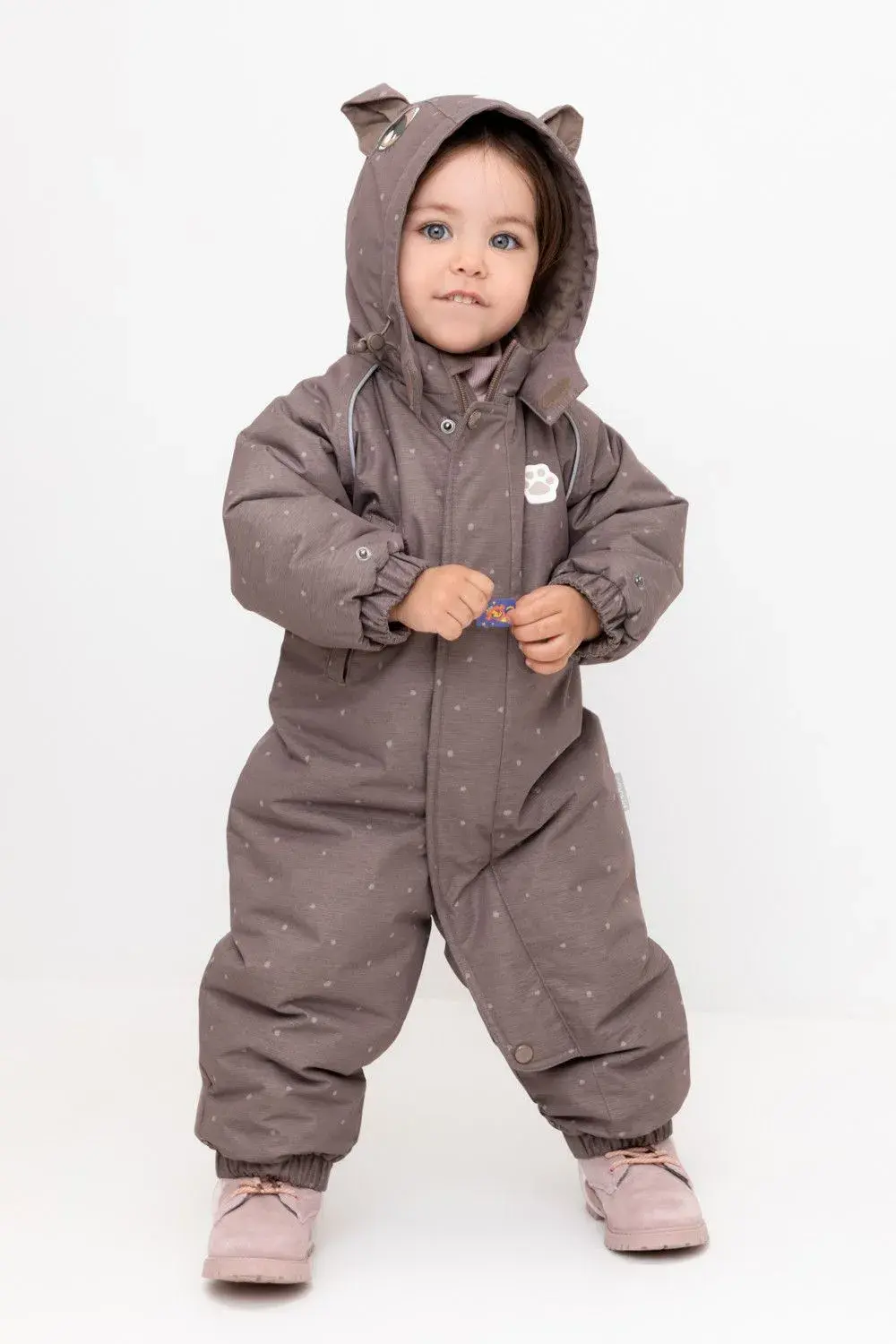 Комбинезон детский с утеплителем нового поколения Fellex®, 250 г/м2. • Мембранная ткань 5000/5000 покрыта тефлоновой пропиткой, отталкивающей воду и грязь, обладает "дышащими" свойствами и гарантирует идеальный воздухообмен. • Лёгкий утеплитель сохраняет тепло, позволяет активно двигаться не сковывая движения, не впитывает влагу. • Мягкий трикотажный подклад из хлопка • Несъемный капюшон с принтом и декоративными ушками • Утяжка на капюшоне со стопперами • Защита подбородка • Мягкий воротник и манжеты • Ветрозащитная планка • Удлиненная молния для легкого одевания • Съемные силиконовые штрипки • Эластичные манжеты • 1 карман на молнии • Светоотражающие элементы • Внутренняя размерная этикетка с местом для имени • Дополнительно в размерах 68-74, 74-80, 80-86 пристегивающиеся утепленные варежки и пинетки.