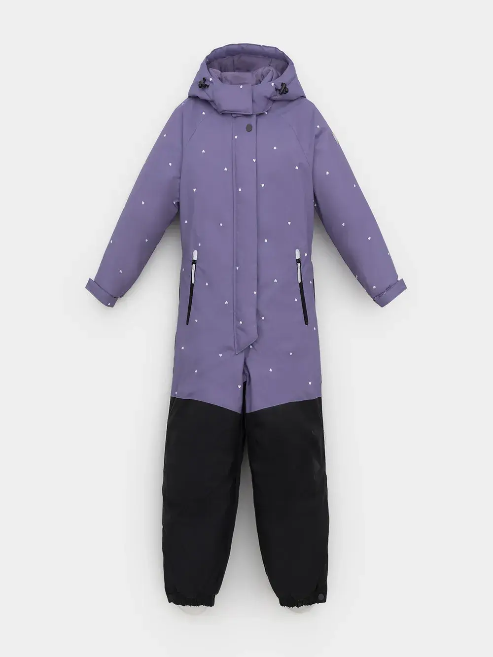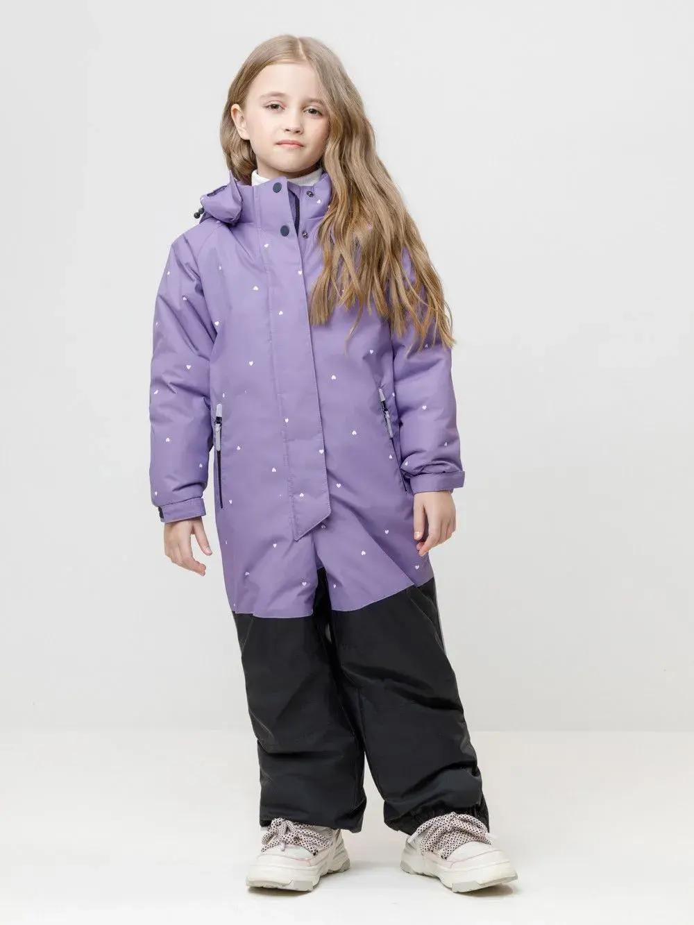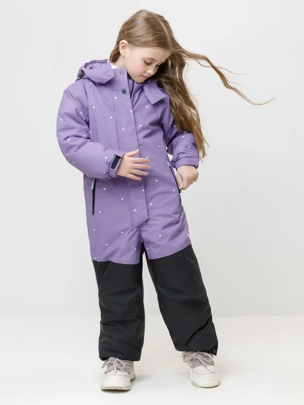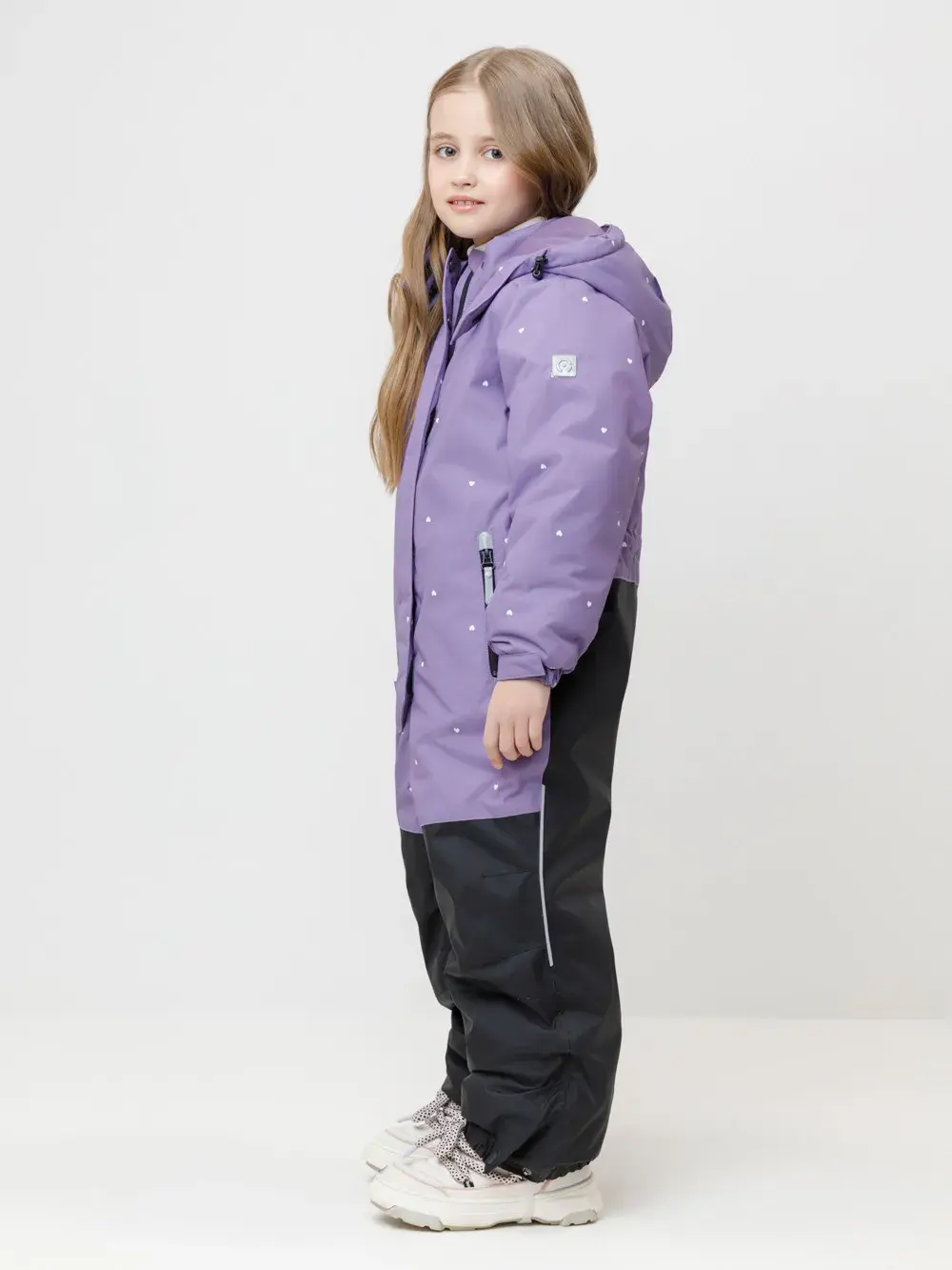Зимний комбинезон для девочки с утеплителем SEE®: 250 г/м2 . Выполнен из мембранной ткани с дополнительной тефлоновой обработкой, которая предохраняет изделие от загрязнений и отталкивает влагу. Подклад выполнен из 100% полиэстера Tricot. Комбинезон застёгивается на молнию и внешнюю планку на липучках и кнопках, предусмотрена защита подбородка. Съёмный капюшон имеет эластичную утяжку со стопперами. Резинка по спинке обеспечивает лучшее прилегание. По бокам два кармана на молнии. Эластичные манжеты на рукавах регулируются по ширине с помощью липучки, по низу изделия - с помощью кнопки. Внутренняя противоснежная юбка защищает обувь от попадания снега и удерживает комбинезон в закреплённом положении, предусмотрены отстёгивающиеся штрипки до размера 116-122 включительно. Во всех изделиях верхнего ассортимента для безопасности ребёнка предусмотрены светоотражающие элементы.