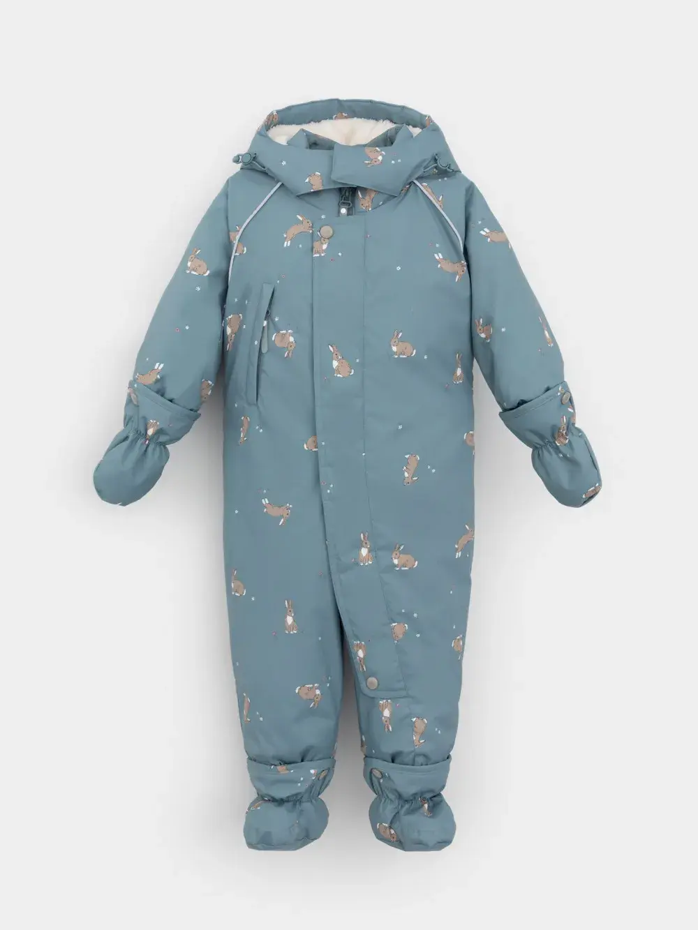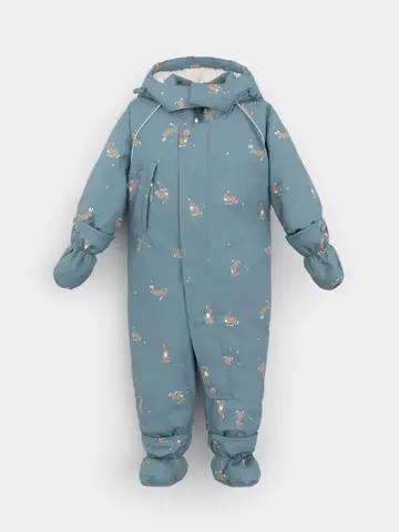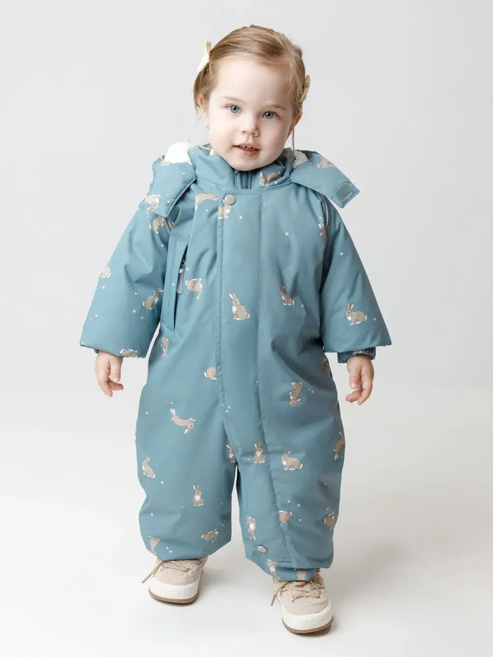 Зимний комбинезон ясельный с утеплителем SEE®: 250 г/м2. Выполнен из мембранной ткани с дополнительной тефлоновой обработкой, которая предохраняет изделие от загрязнений и отталкивает влагу. Подклад выполнен из 100% хлопка. Комбинезон застёгивается на молнию и внешнюю планку на липучках, предусмотрена защита подбородка. Несъёмный капюшон с подкладом из мягкого флиса имеет эластичную утяжку со стопперами и декоративные ушки. Резинка по спинке для лучшего прилегания. На груди карман на молнии. По рукавам и низу изделия эластичные манжеты, на ножках отстёгивающиеся силиконовые штрипки. До размера 80-86 включительно в комплекте идут рукавицы и пинетки. Во всех изделиях верхнего ассортимента для безопасности ребёнка предусмотрены светоотражающие элементы.