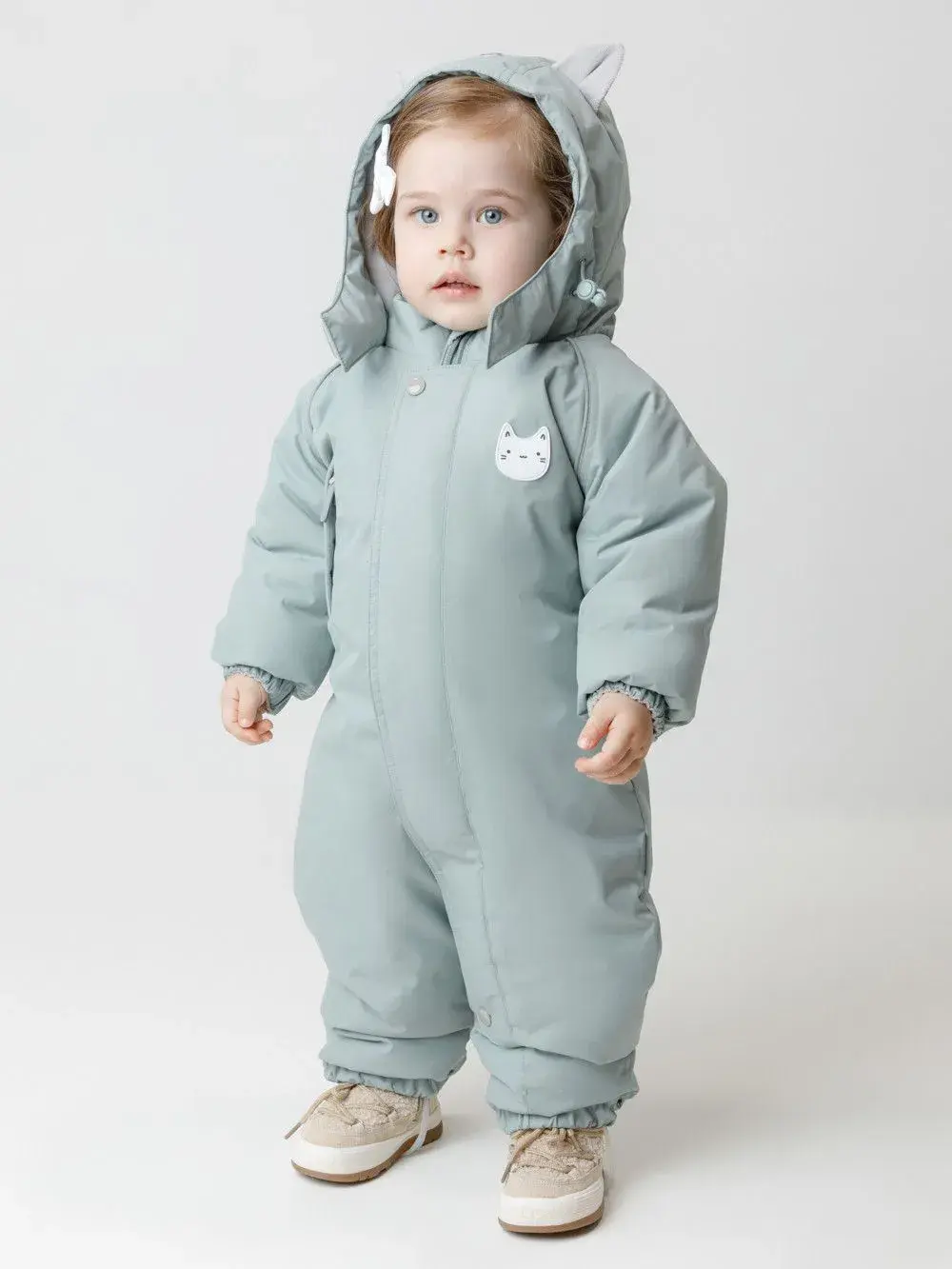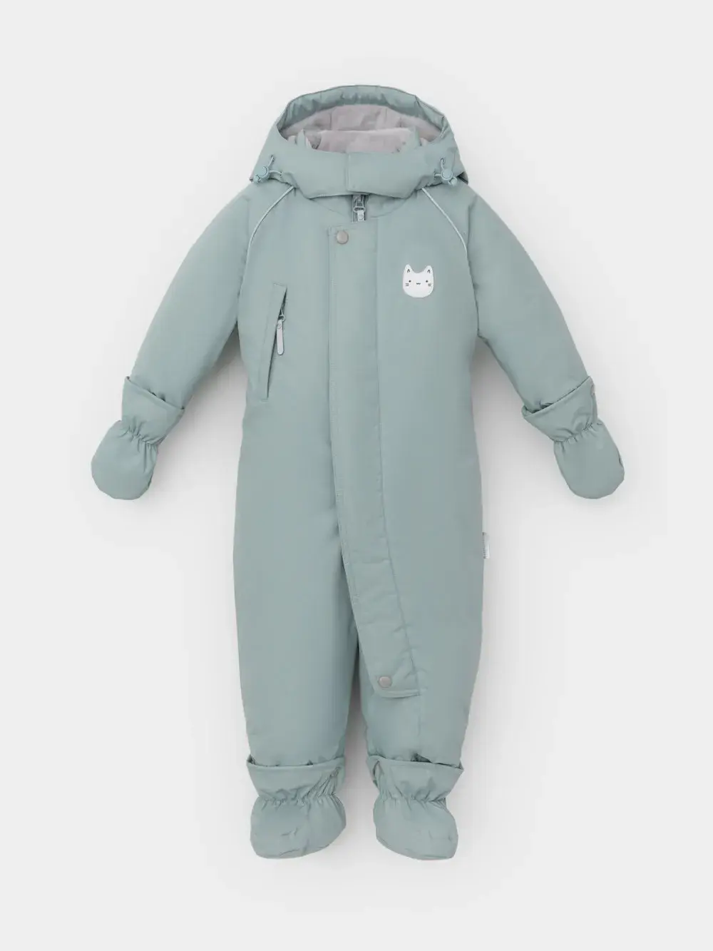 Зимний комбинезон ясельный с утеплителем SEE®: 300 г/м2. Выполнен из мембранной ткани с дополнительной тефлоновой обработкой, которая предохраняет изделие от загрязнений и отталкивает влагу. Подклад выполнен из велюра (80% хлопок, 20% полиэстер) и полиэстера Tricot. Комбинезон застёгивается на молнию и внешнюю планку на липучках, предусмотрена защита подбородка. Несъёмный капюшон имеет эластичную утяжку со стопперами и декоративные ушки. Резинка по спинке для лучшего прилегания. На груди карман на молнии. По рукавам и низу изделия эластичные манжеты, на ножках отстёгивающиеся силиконовые штрипки. До размера 80-86 включительно в комплекте идут рукавицы и пинетки. Во всех изделиях верхнего ассортимента для безопасности ребёнка предусмотрены светоотражающие элементы.