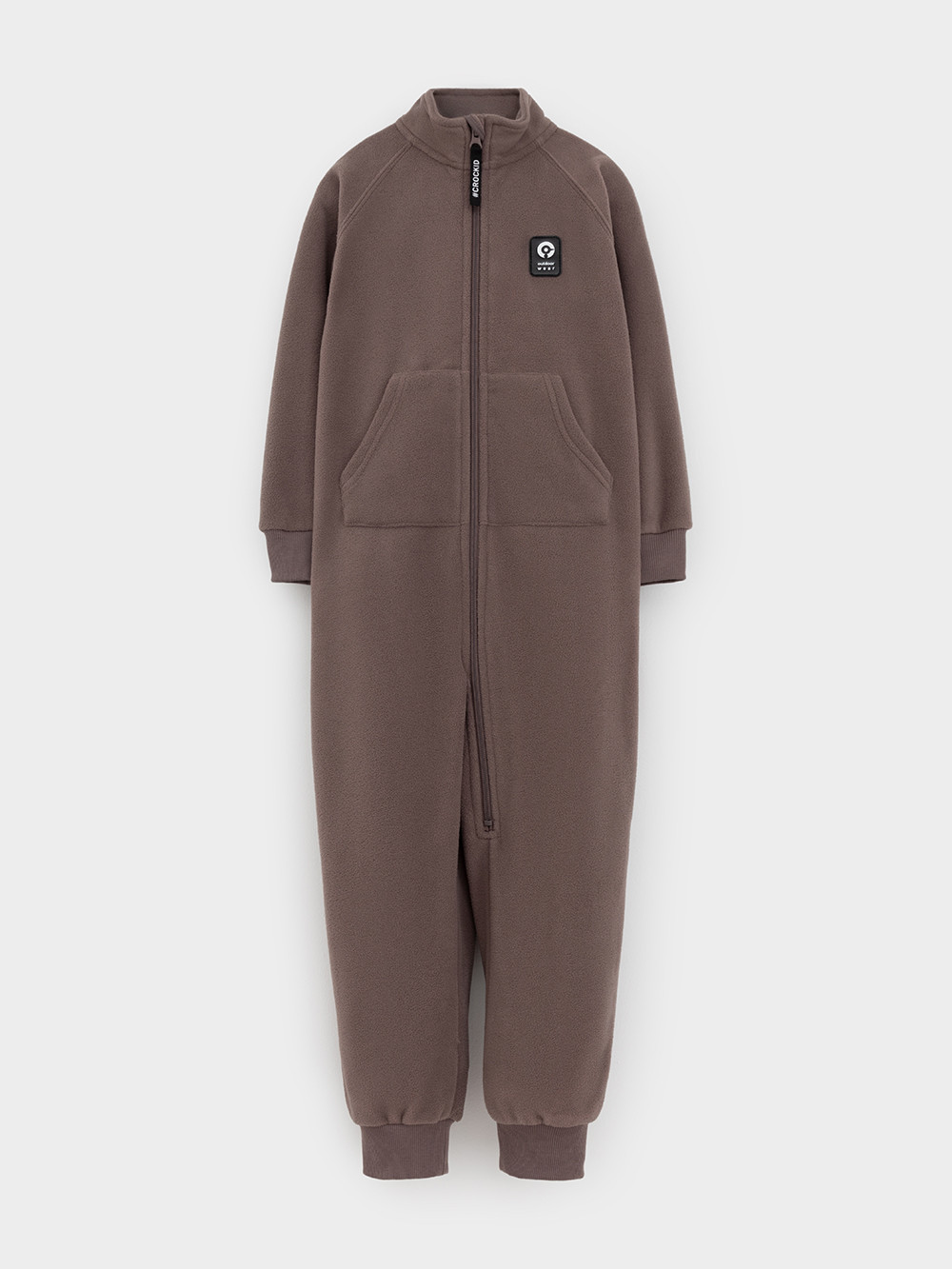 Флисовый комбинезон для мальчика с высоким воротником. Застёгивается на удлинённую молнию с мягкой защитой шеи и подбородка. Рукава и низ изделия на манжетах из трикотажа в рубчик. Эластичная резинка по спинке обеспечивает идеальную посадку. Спереди удобный карман-кенгуру. Комбинезон сохраняет цвет и форму после многократных стирок.