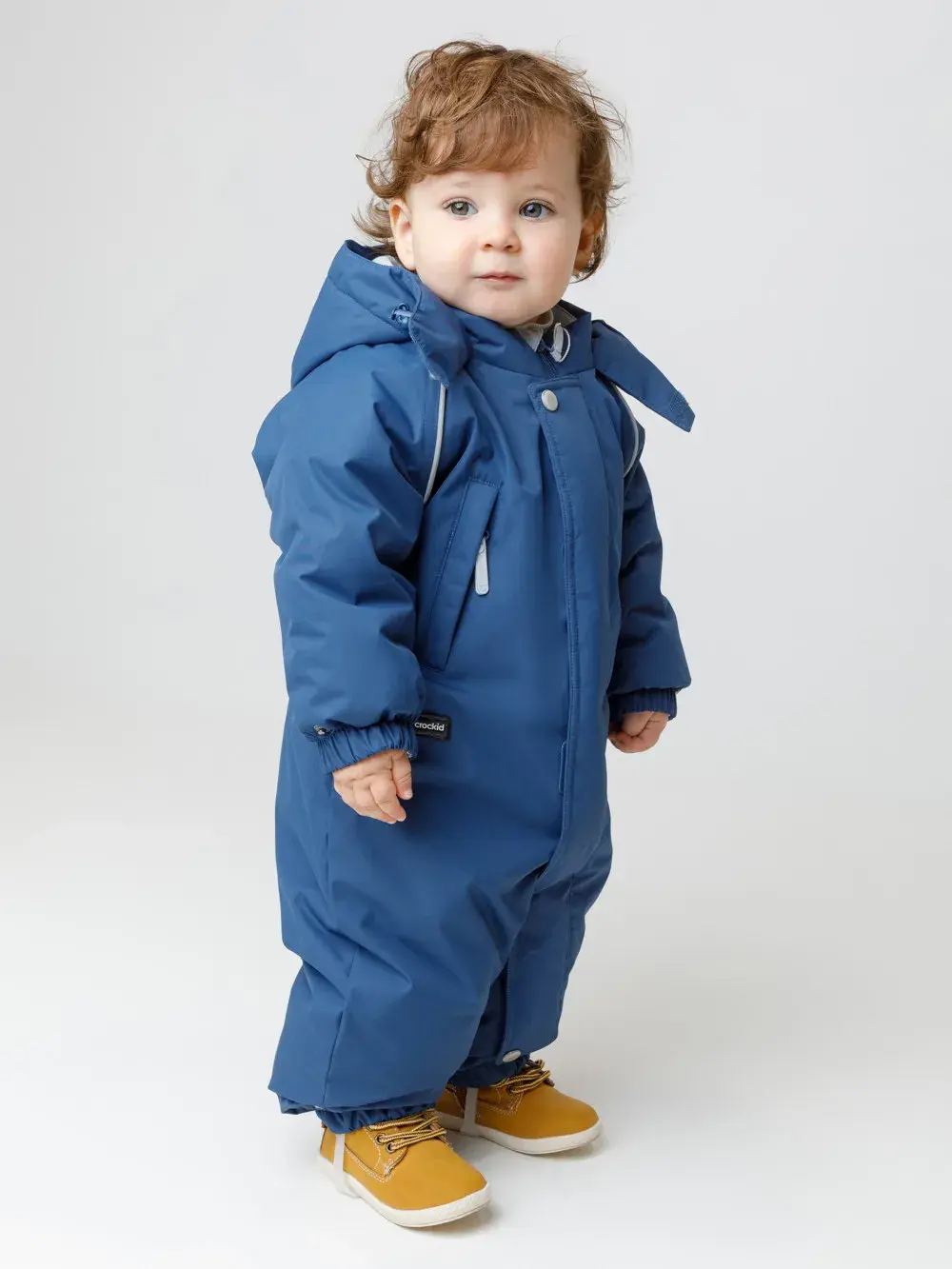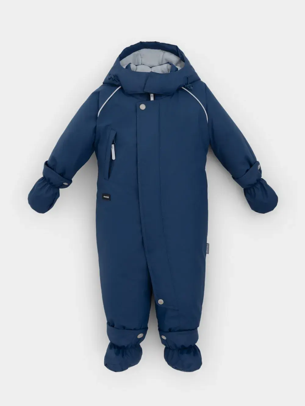 Зимний комбинезон ясельный с утеплителем SEE®: 250 г/м2. Выполнен из мембранной ткани с дополнительной тефлоновой обработкой, которая предохраняет изделие от загрязнений и отталкивает влагу. Подклад выполнен из 100% хлопка. Комбинезон застёгивается на молнию и внешнюю планку на липучках, предусмотрена защита подбородка. Несъёмный капюшон имеет эластичную утяжку со стопперами. Резинка по спинке для лучшего прилегания. На груди карман на молнии. По рукавам и низу изделия эластичные манжеты, на ножках отстёгивающиеся силиконовые штрипки. В размерах 74-80 и 80-86 в комплекте идут рукавицы и пинетки. Во всех изделиях верхнего ассортимента для безопасности ребёнка предусмотрены светоотражающие элементы.
