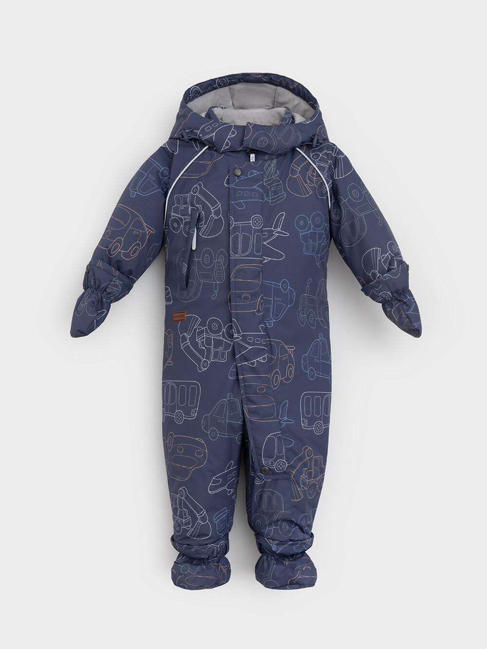 Зимний комбинезон ясельный с утеплителем SEE®: 250 г/м2. Выполнен из мембранной ткани с дополнительной тефлоновой обработкой, которая предохраняет изделие от загрязнений и отталкивает влагу. Подклад выполнен из 100% хлопка. Комбинезон застёгивается на молнию и внешнюю планку на липучках, предусмотрена защита подбородка. Несъёмный капюшон имеет эластичную утяжку со стопперами. Резинка по спинке для лучшего прилегания. На груди карман на молнии. По рукавам и низу изделия эластичные манжеты, на ножках отстёгивающиеся силиконовые штрипки. В размерах 74-80 и 80-86 в комплекте идут рукавицы и пинетки. Во всех изделиях верхнего ассортимента для безопасности ребёнка предусмотрены светоотражающие элементы.