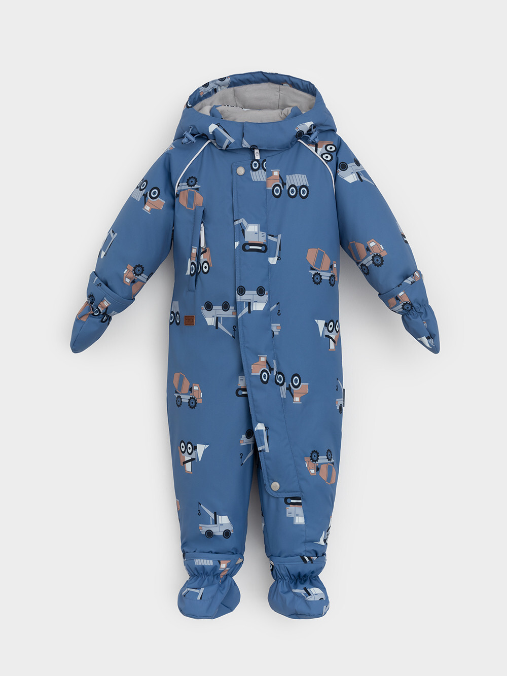 Зимний комбинезон ясельный с утеплителем SEE®: 250 г/м2. Выполнен из мембранной ткани с дополнительной тефлоновой обработкой, которая предохраняет изделие от загрязнений и отталкивает влагу. Подклад выполнен из 100% хлопка. Комбинезон застёгивается на молнию и внешнюю планку на липучках, предусмотрена защита подбородка. Несъёмный капюшон имеет эластичную утяжку со стопперами. Резинка по спинке для лучшего прилегания. На груди карман на молнии. По рукавам и низу изделия эластичные манжеты, на ножках отстёгивающиеся силиконовые штрипки. В размерах 74-80 и 80-86 в комплекте идут рукавицы и пинетки. Во всех изделиях верхнего ассортимента для безопасности ребёнка предусмотрены светоотражающие элементы.