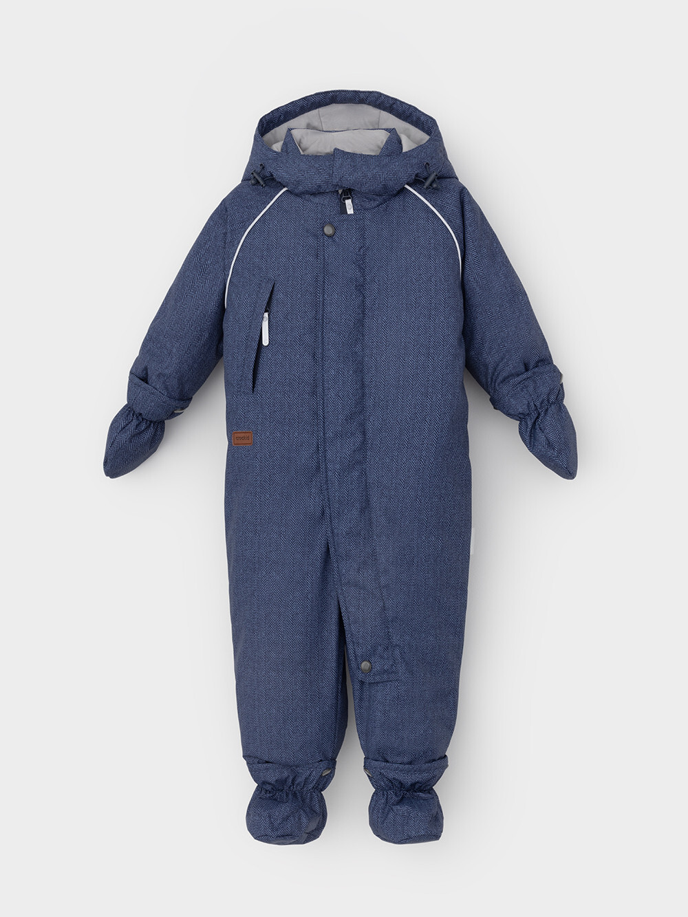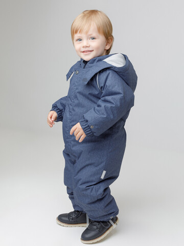Зимний комбинезон ясельный с утеплителем SEE®: 250 г/м2. Выполнен из мембранной ткани с дополнительной тефлоновой обработкой, которая предохраняет изделие от загрязнений и отталкивает влагу. Подклад выполнен из 100% хлопка. Комбинезон застёгивается на молнию и внешнюю планку на липучках, предусмотрена защита подбородка. Несъёмный капюшон имеет эластичную утяжку со стопперами. Резинка по спинке для лучшего прилегания. На груди карман на молнии. По рукавам и низу изделия эластичные манжеты, на ножках отстёгивающиеся силиконовые штрипки. В размерах 74-80 и 80-86 в комплекте идут рукавицы и пинетки. Во всех изделиях верхнего ассортимента для безопасности ребёнка предусмотрены светоотражающие элементы.