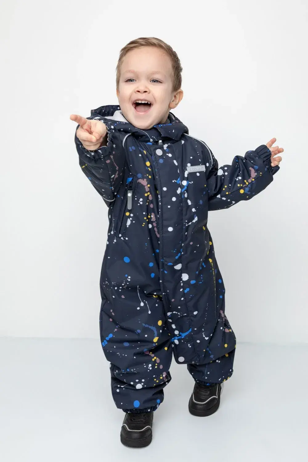 Демисезонный комбинезон с утеплителем SEE® 120 г/м2. Выполнен из мембранной ткани с дополнительной тефлоновой обработкой. Данный вид обработки предохраняет изделие от загрязнения и лучше отводит влагу. Подклад из 60% хлопка и 40% полиэстера. Удлиненная молния для легкого одевания с защитой подбородка. Ветрозащитная планка фиксируется на липучках и кнопках. Утяжка на капюшоне с потайными стопперами. По низу рукавов и брючин, а также на спинке изделия предусмотрена эластичная резинка для лучшего прилегания. Для фиксации комбинезона используются съемные силиконовые штрипки. Во всех изделиях верхнего ассортимента для безопасности ребенка предусмотрены светоотражающие элементы.