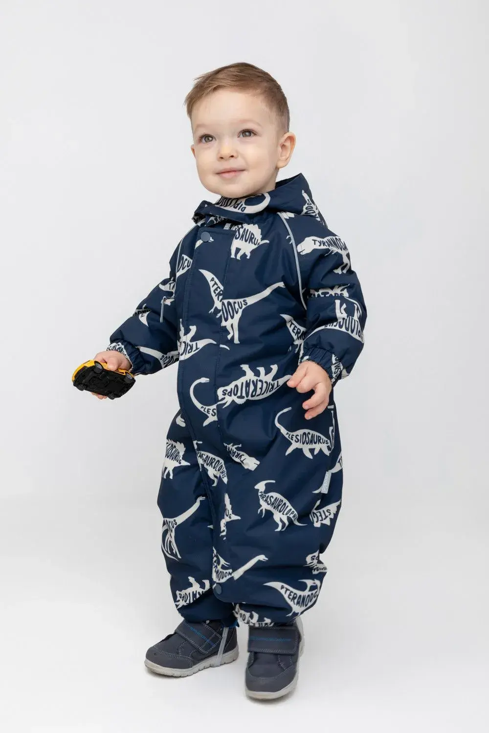 Демисезонный комбинезон ясельный с утеплителем SEE® 120 г/м2. Выполнен из мембранной ткани с дополнительной тефлоновой обработкой. Данный вид обработки предохраняет изделие от загрязнения и лучше отводит влагу. Подклад из 60% хлопка и 40% полиэстра. Удлиненная молния для легкого одевания с защитой подбородка. Ветрозащитная планка фиксируется на липучках и кнопках. Утяжка на капюшоне с потайными стопперами. По низу рукавов и брючин, а также на спинке изделия предусмотрена эластичная резинка для лучшего прилегания. Для фиксации комбинезона используются съемные силиконовые штрипки. В размерах 68-80 функциональные отвороты на рукавах и брючинах. Во всех изделиях верхнего ассортимента для безопасности ребенка предусмотрены светоотражающие элементы.