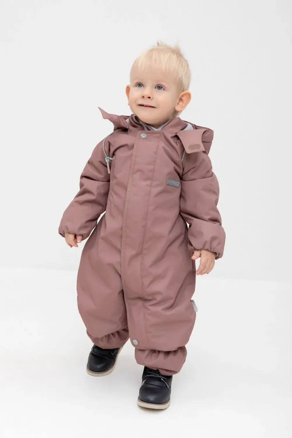 Демисезонный комбинезон ясельный с утеплителем SEE® 120 г/м2 и декоративными ушками. Выполнен из мембранной ткани с дополнительной тефлоновой обработкой. Данный вид обработки предохраняет изделие от загрязнения и лучше отводит влагу. Подклад из 100% хлопка. Удлиненная молния для легкого одевания с защитой подбородка. Ветрозащитная планка фиксируется на липучках и кнопках. Утяжка на капюшоне с потайными стопперами. По низу рукавов и брючин, а также на спинке изделия предусмотрена эластичная резинка для лучшего прилегания. Для фиксации комбинезона используются съемные силиконовые штрипки. В размерах 74-80 функциональные отвороты на рукавах и брючинах. Во всех изделиях верхнего ассортимента для безопасности ребенка предусмотрены светоотражающие элементы.