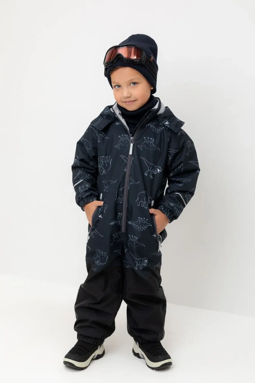 Демисезонный комбинезон для мальчика с утеплителем SEE®: 120 г/м2. Выполнен из мембранной ткани с дополнительной тефлоновой обработкой. Данный вид обработки предохраняет изделие от загрязнения и лучше отводит влагу. Подклад из 100% полиэстра. У изделия удлиненная молния для легкого одевания с защитой подбородка. Утяжка по спинке со стопперами. Несъемный капюшон имеет эластичную резинку для лучшего прилегания. По низу рукавов эластичные манжеты. По бокам два кармана на молнии. Для фиксации комбинезона используются съемные силиконовые штрипки. Во всех изделиях верхнего ассортимента для безопасности ребенка предусмотрены светоотражающие элементы.