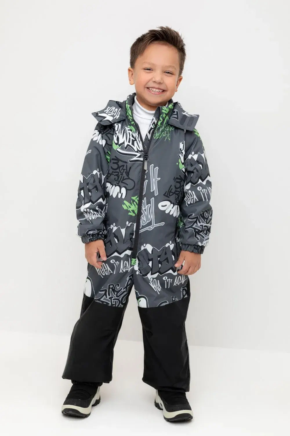 Демисезонный комбинезон для мальчика с утеплителем SEE®: 120 г/м2. Выполнен из мембранной ткани с дополнительной тефлоновой обработкой. Данный вид обработки предохраняет изделие от загрязнения и лучше отводит влагу. Подклад из 100% полиэстра. У изделия удлиненная молния для легкого одевания с защитой подбородка. Утяжка по спинке со стопперами. Несъемный капюшон имеет эластичную резинку для лучшего прилегания. По низу рукавов эластичные манжеты. По бокам два кармана на молнии. Для фиксации комбинезона используются съемные силиконовые штрипки. Во всех изделиях верхнего ассортимента для безопасности ребенка предусмотрены светоотражающие элементы.