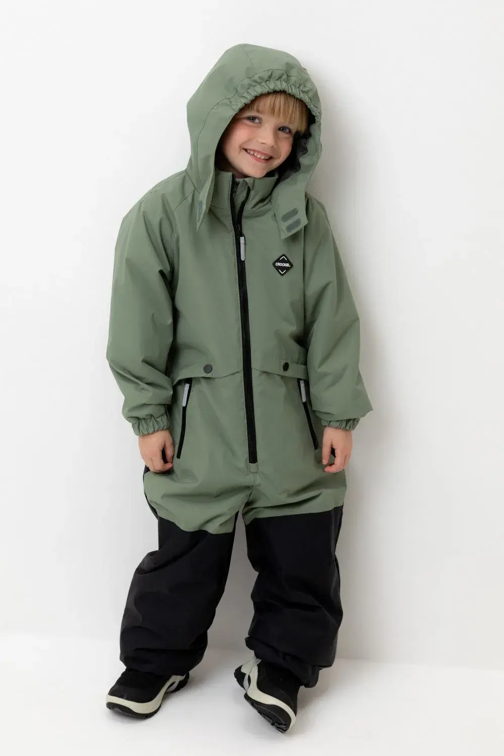 Демисезонный комбинезон для мальчика с утеплителем SEE®: 120 г/м2. Выполнен из мембранной ткани с дополнительной тефлоновой обработкой. Данный вид обработки предохраняет изделие от загрязнения и лучше отводит влагу. Подклад из 100% полиэстра. У изделия удлиненная молния для легкого одевания с защитой подбородка. Утяжка по спинке со стопперами. Несъемный капюшон имеет эластичную резинку для лучшего прилегания. По низу рукавов эластичные манжеты. По бокам два кармана на молнии. Для фиксации комбинезона используются съемные силиконовые штрипки. Во всех изделиях верхнего ассортимента для безопасности ребенка предусмотрены светоотражающие элементы.