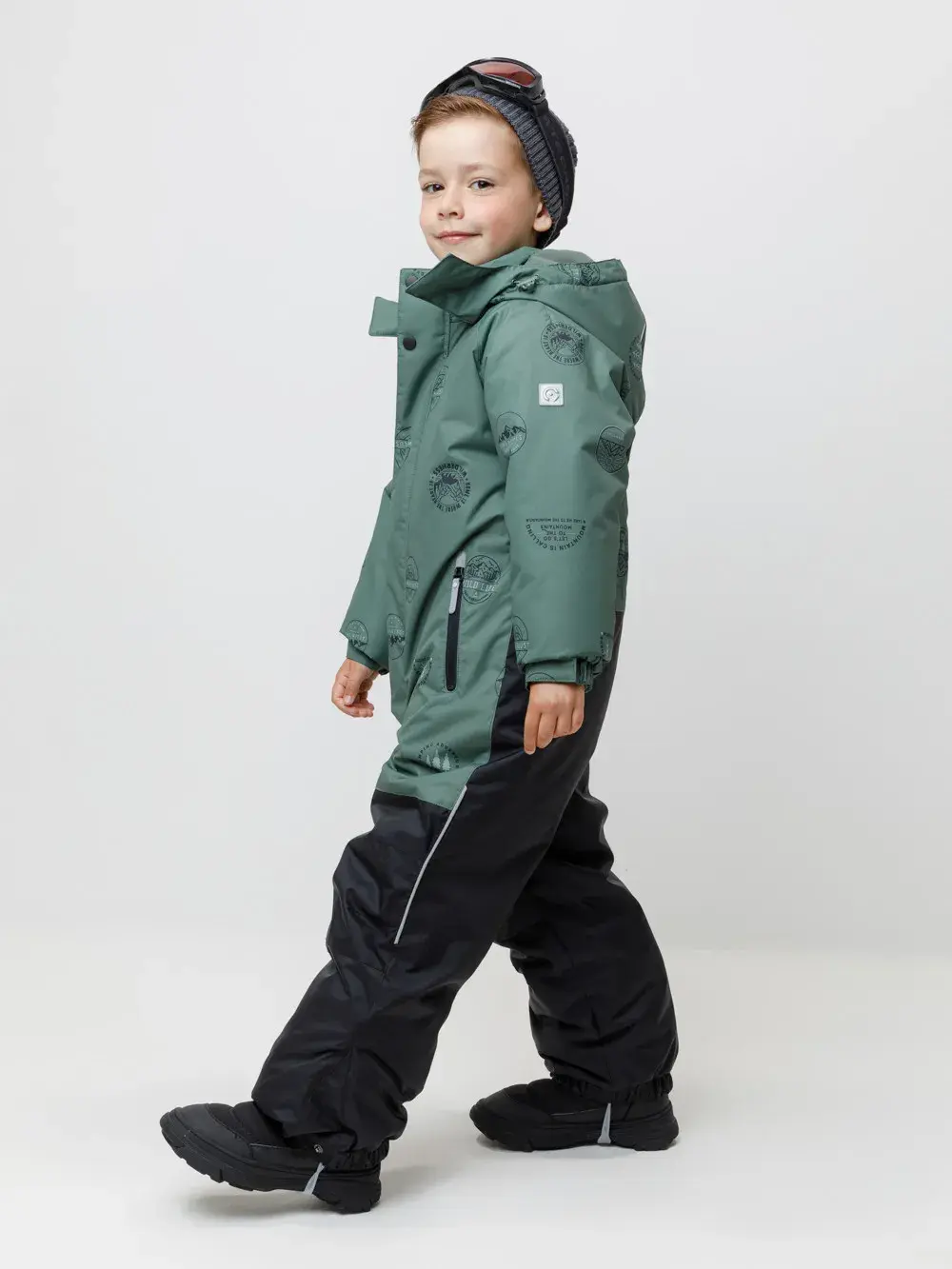 Зимний комбинезон для мальчика с утеплителем SEE®: 250 г/м2 . Выполнен из мембранной ткани с дополнительной тефлоновой обработкой, которая предохраняет изделие от загрязнений и отталкивает влагу. Подклад выполнен из 100% полиэстера Tricot. Комбинезон застёгивается на молнию и внешнюю планку на липучках и кнопках, предусмотрена защита подбородка. Съёмный капюшон имеет эластичную утяжку со стопперами. Резинка по спинке обеспечивает лучшее прилегание. По бокам два кармана на молнии. Эластичные манжеты на рукавах регулируются по ширине с помощью липучки, по низу изделия - с помощью кнопки. Внутренняя противоснежная юбка защищает обувь от попадания снега и удерживает комбинезон в закреплённом положении. В размерах с 98-104 по 116-122 предусмотрены отстёгивающиеся штрипки. Во всех изделиях верхнего ассортимента для безопасности ребёнка предусмотрены светоотражающие элементы.