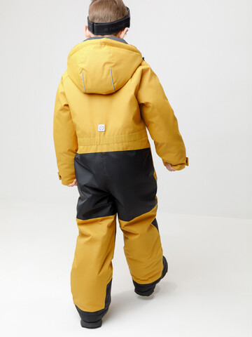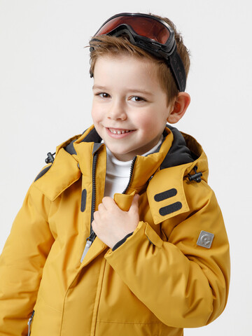 Зимний комбинезон для мальчика с утеплителем SEE®: 250 г/м2 . Выполнен из мембранной ткани с дополнительной тефлоновой обработкой, которая предохраняет изделие от загрязнений и отталкивает влагу. Подклад выполнен из 100% полиэстера Tricot. Комбинезон застёгивается на молнию и внешнюю планку на липучках и кнопках, предусмотрена защита подбородка. Съёмный капюшон имеет эластичную утяжку со стопперами. Резинка по спинке обеспечивает лучшее прилегание. По бокам два кармана на молнии. На рукавах дополнительние внутренние манжеты, ширина регулируются с помощью липучки. Внутренняя противоснежная юбка по низу изделия защищает обувь от попадания снега и удерживает комбинезон в закреплённом положении. В размерах с 98-104 по 116-122 предусмотрены отстёгивающиеся штрипки. Во всех изделиях верхнего ассортимента для безопасности ребёнка предусмотрены светоотражающие элементы.