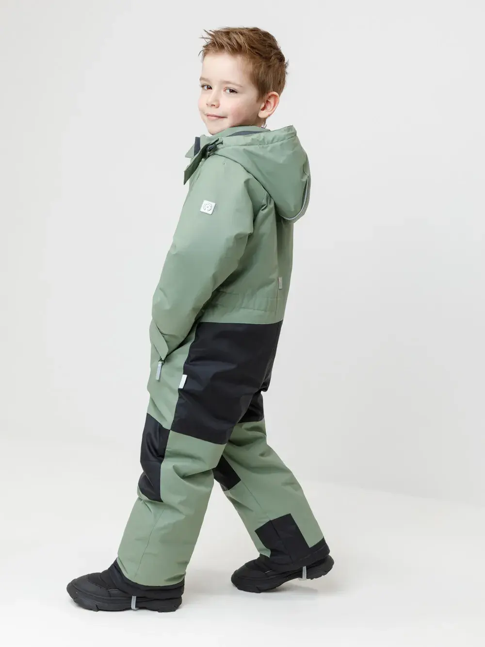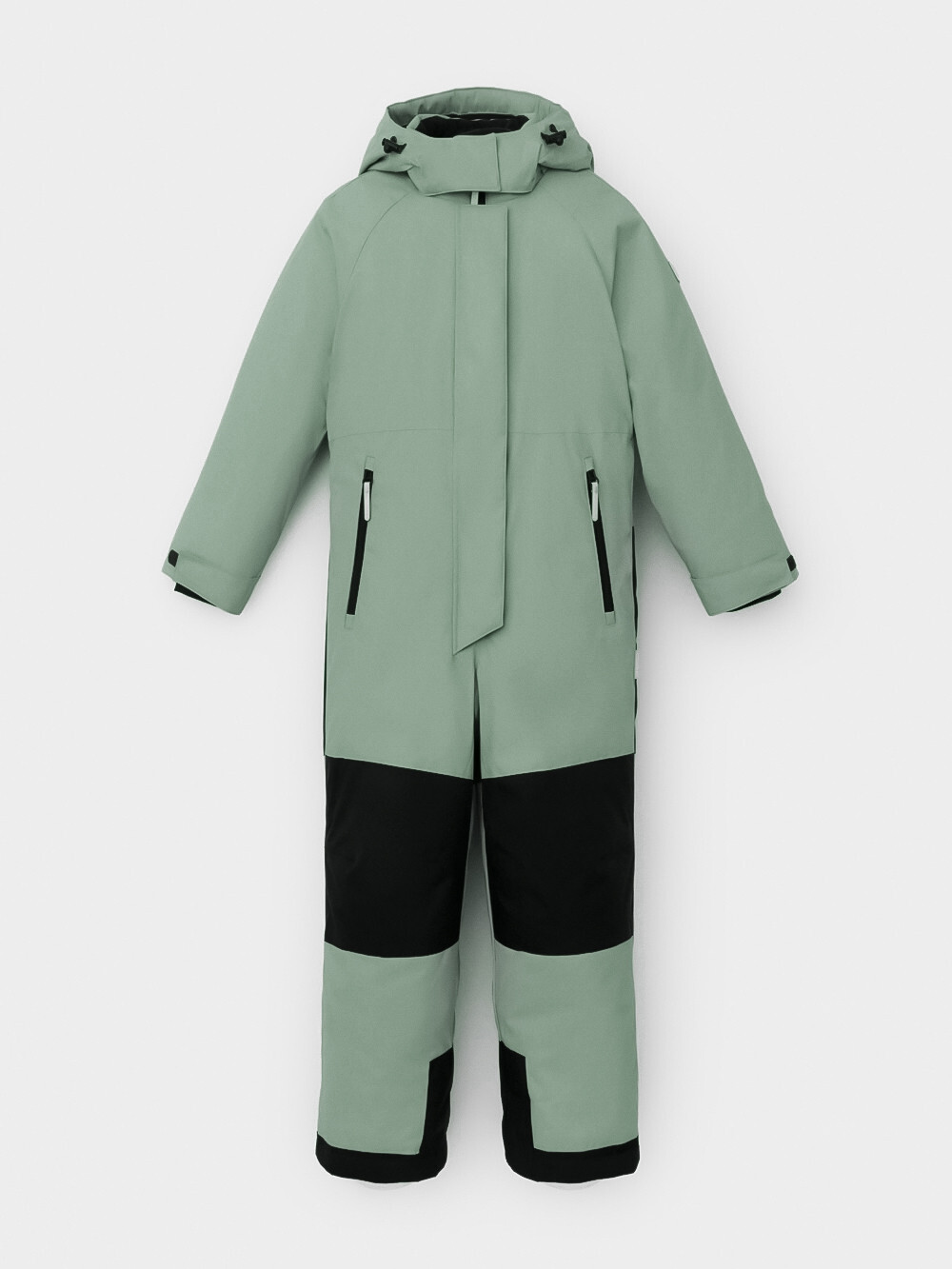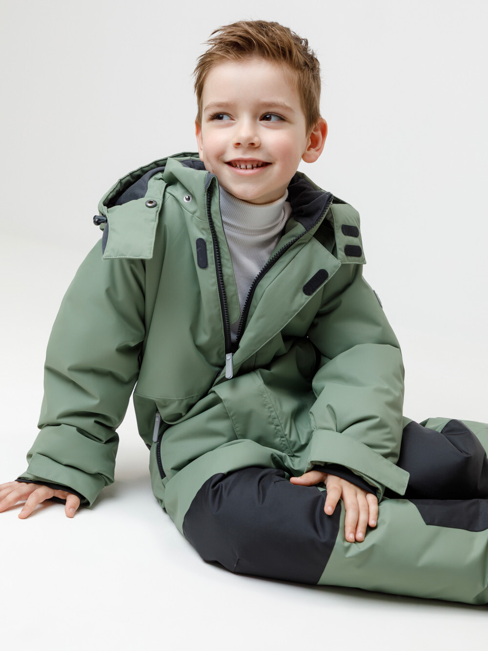 Зимний комбинезон для мальчика с утеплителем SEE®: 250 г/м2 . Выполнен из мембранной ткани с дополнительной тефлоновой обработкой, которая предохраняет изделие от загрязнений и отталкивает влагу. Подклад выполнен из 100% полиэстера Tricot. Комбинезон застёгивается на молнию и внешнюю планку на липучках и кнопках, предусмотрена защита подбородка. Съёмный капюшон имеет эластичную утяжку со стопперами. Резинка по спинке обеспечивает лучшее прилегание. По бокам два кармана на молнии. На рукавах дополнительние внутренние манжеты, ширина регулируются с помощью липучки. Внутренняя противоснежная юбка по низу изделия защищает обувь от попадания снега и удерживает комбинезон в закреплённом положении. В размерах с 98-104 по 116-122 предусмотрены отстёгивающиеся штрипки. Во всех изделиях верхнего ассортимента для безопасности ребёнка предусмотрены светоотражающие элементы.