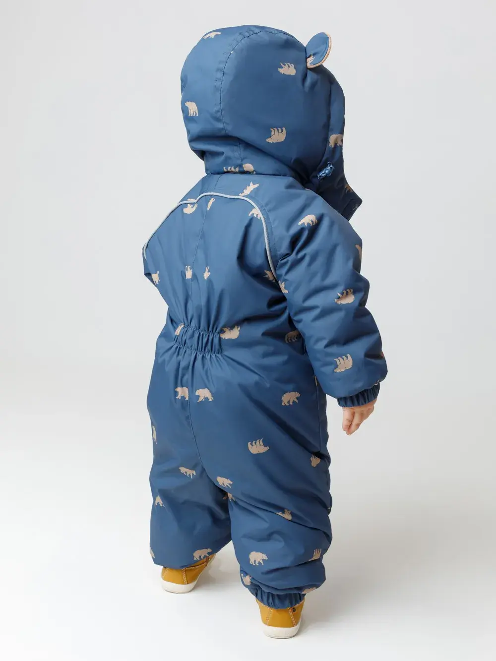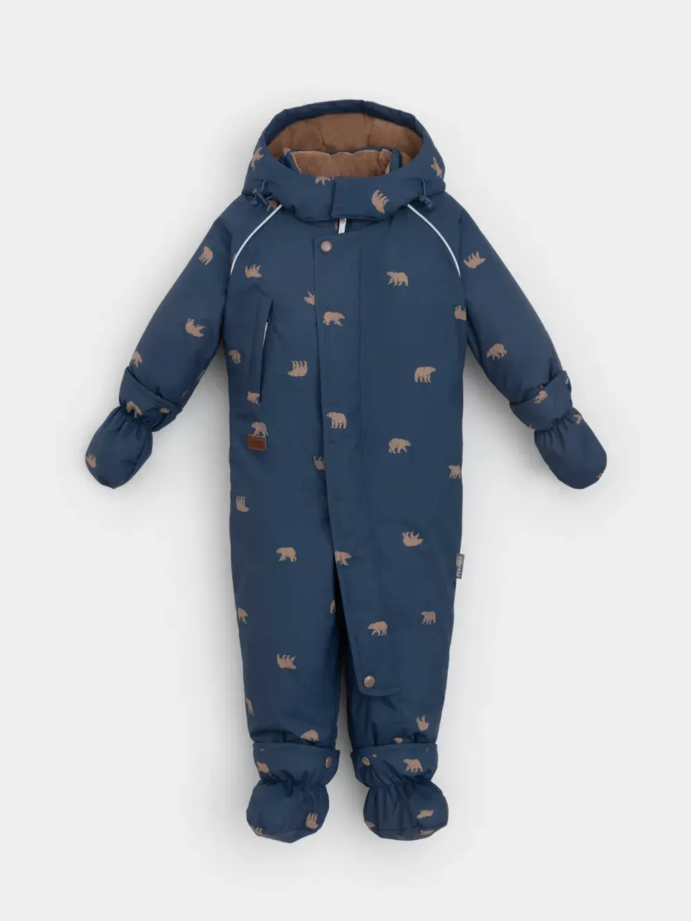 Зимний комбинезон ясельный с утеплителем SEE®: 300 г/м2. Выполнен из мембранной ткани с дополнительной тефлоновой обработкой, которая предохраняет изделие от загрязнений и отталкивает влагу. Подклад комбинированный выполнен из велюра (80% хлопок, 20% полиэстер) и полиэстера Tricot. Комбинезон застёгивается на молнию и внешнюю планку на липучках, предусмотрена защита подбородка. Несъёмный капюшон имеет эластичную утяжку со стопперами. Резинка по спинке для лучшего прилегания. На груди карман на молнии. По рукавам и низу изделия эластичные манжеты, на ножках отстёгивающиеся силиконовые штрипки. В размерах с 62-68 по 80-86 в комплекте идут рукавицы и пинетки. Во всех изделиях верхнего ассортимента для безопасности ребёнка предусмотрены светоотражающие элементы.