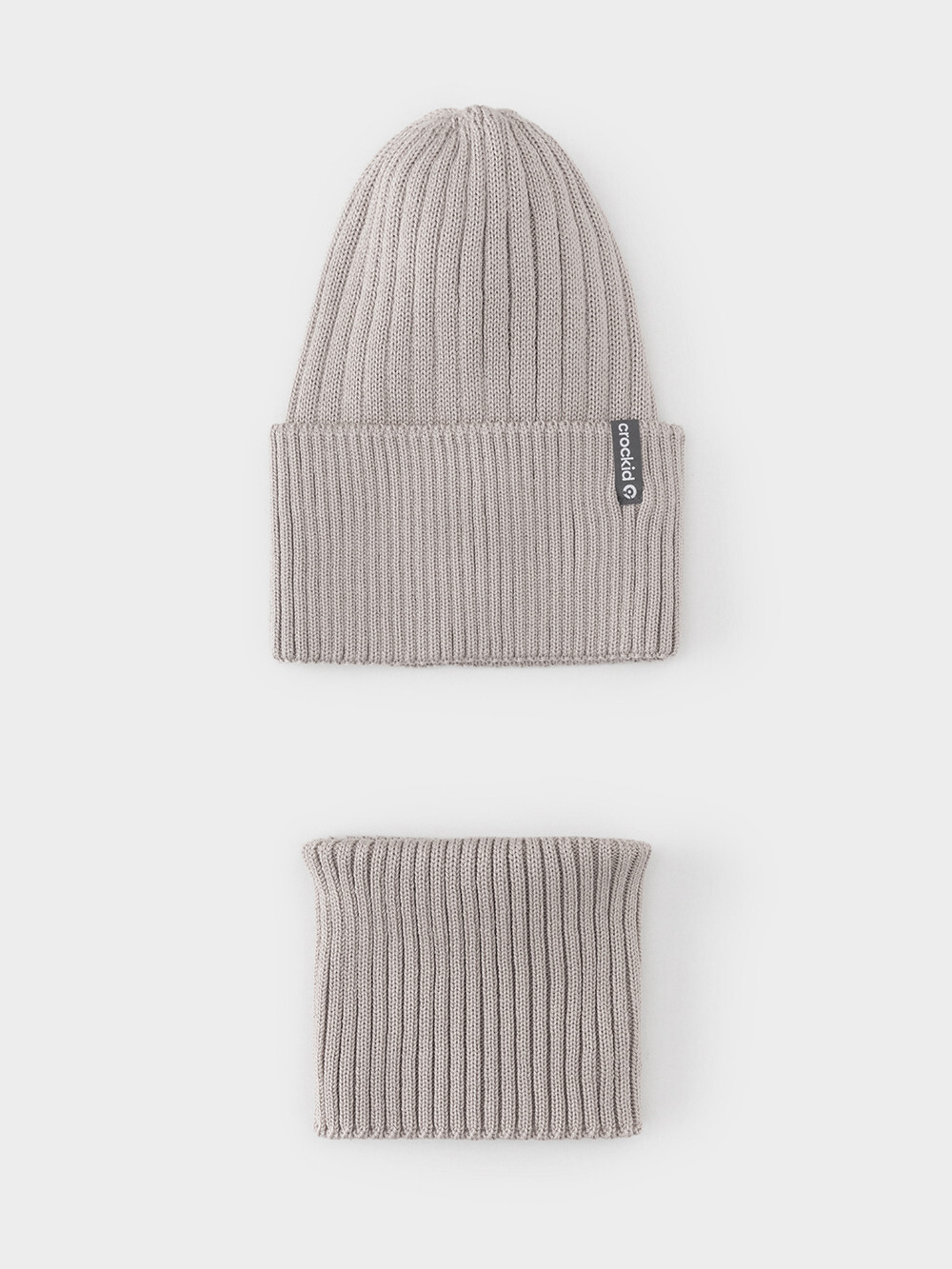 Комплект демисезонный: одинарная шапка с отворотом и двойной снуд. Связан из высококачественного хлопка. Комфортно прилегает, обеспечивая защиту от холода и хороший теплообмен. Изделия хорошо переносят многократные стирки, сохраняя цвет и форму.