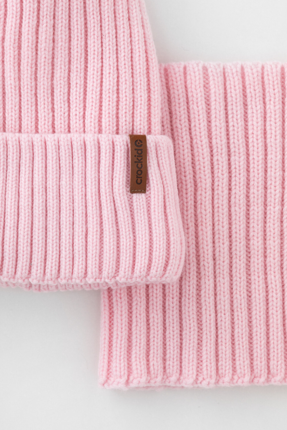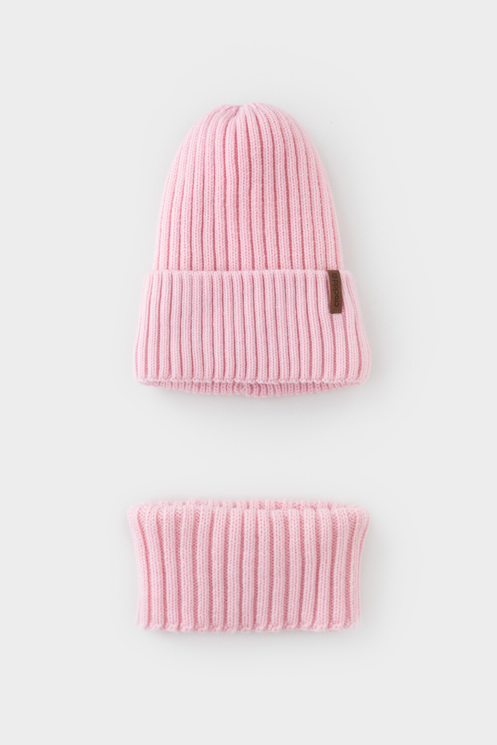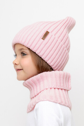 Комплект детский: шапка и снуд из полушерсти. Тёплая вязаная шапка с отворотом на подкладе из флиса. Украшена нашивкой из искусственной кожи. Узкий снуд без оборотов вокруг шеи. Изделие сохраняет форму и стойкий цвет после многочисленных стирок.