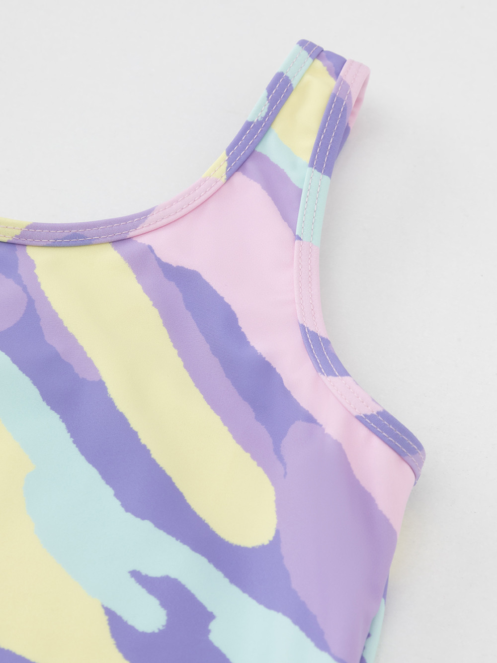 Слитный купальник на лямках для девочки. Внутри подклад. Оригинальная набивка выполнена из стойких гипоаллергенных красителей.