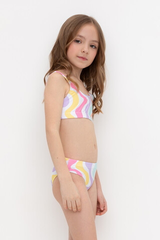 Раздельный купальник для девочки. Топ на эластичных лямках и плавки на резинке . Оригинальная набивка выполнена из стойких гипоаллергенных красителей.