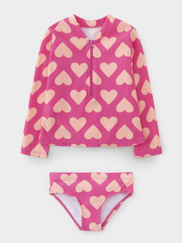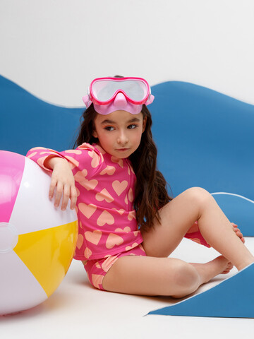 Купальный костюм для девочки. Верхняя часть застёгивается на молнию. В плавках эластичная резинка. Внутри подклад. Оригинальная набивка выполнена из стойких гипоаллергенных красителей.