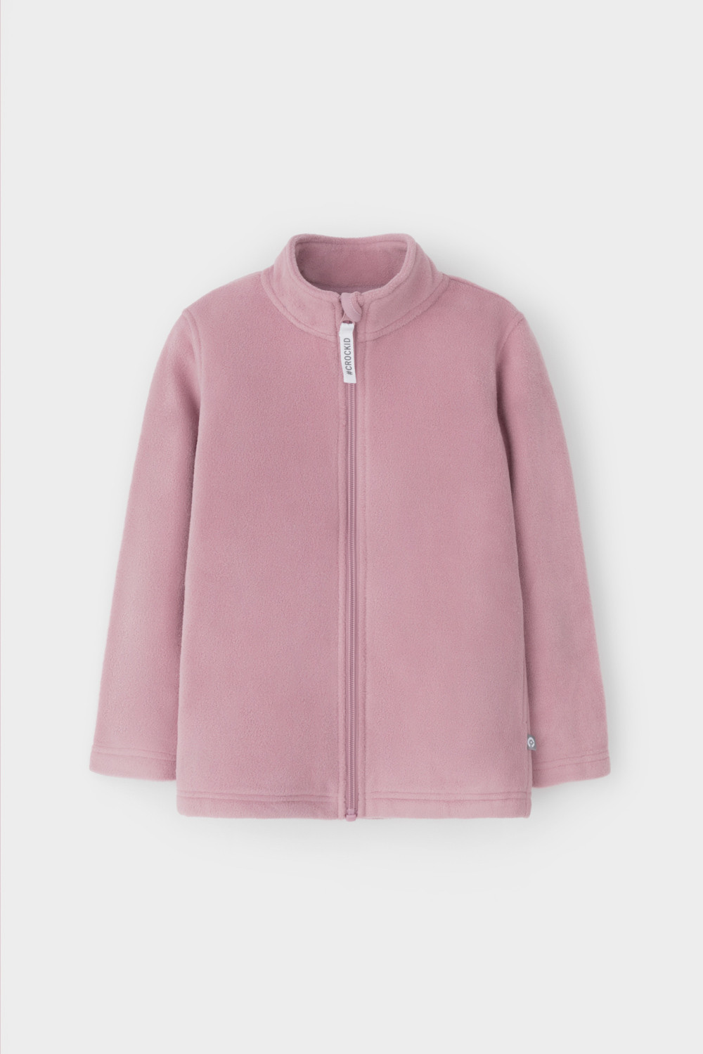 Флисовая куртка для девочки. У изделия высокий воротник, предусмотрена защита шеи и подбородка, по бокам карманы. Куртка сохраняет цвет и форму после многократных стирок.