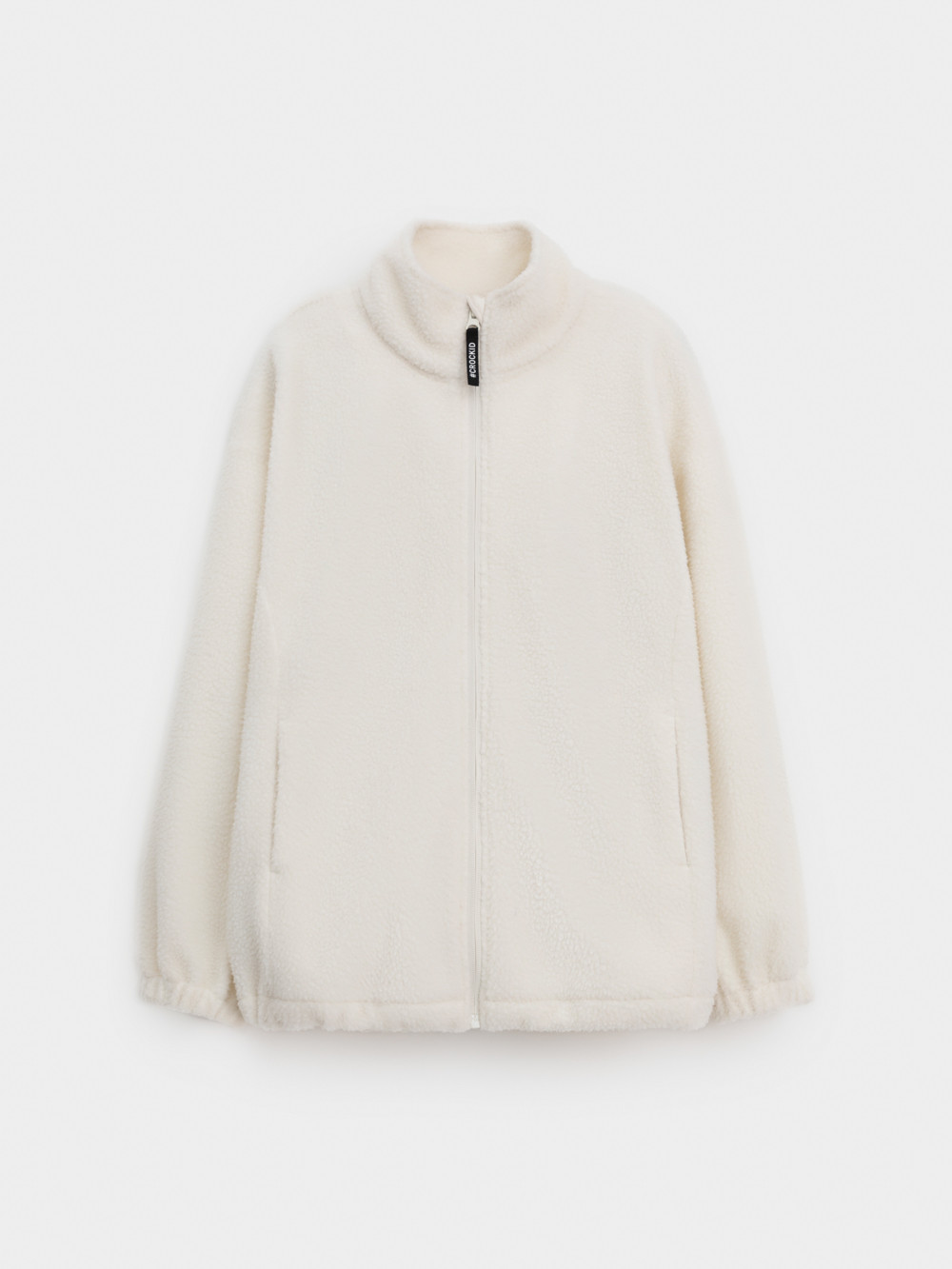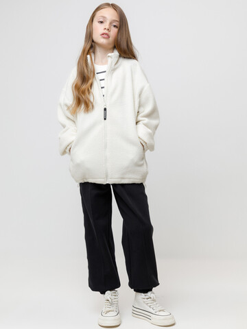 Флисовая куртка детская. У изделия высокий воротник и застёжка на молнию с мягкой защитой шеи и подбородка. По бокам два кармана. Рукава собраны на резинку. Низ изделия регулируется по ширине с помощью эластичной утяжки со стопперами. Куртка сохраняет цвет и форму после многократных стирок.