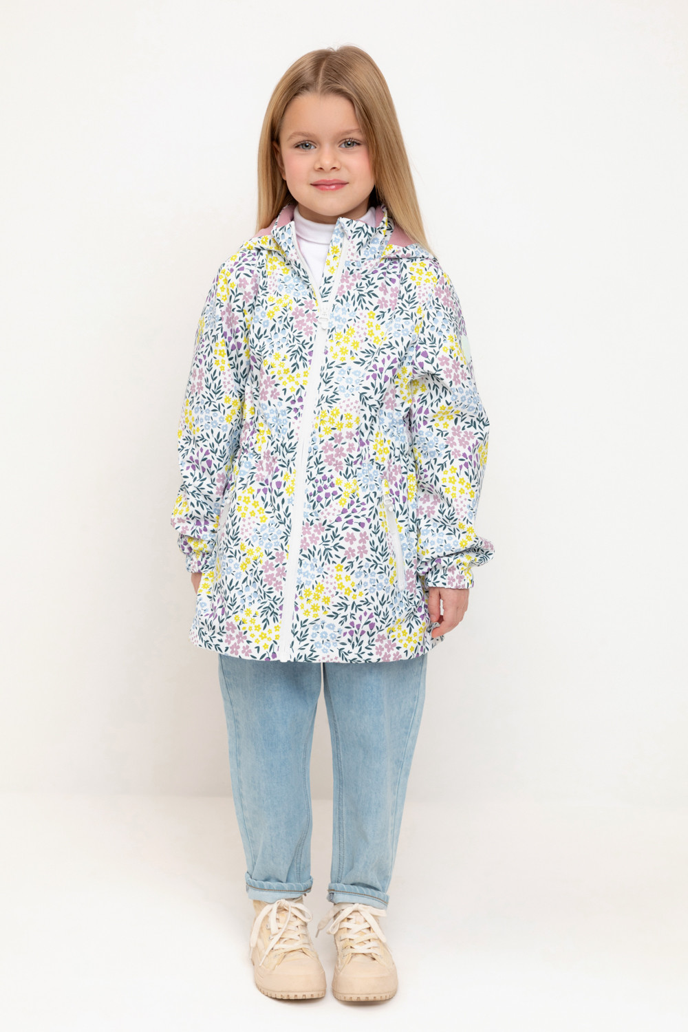 Ветровка для девочки из мембранной ткани с дополнительной тефлоновой обработкой. Верхняя мембранная ткань 1000/1000 с тефлоновым покрытием отталкивает воду и грязь и обладает «дышащими» свойствами. Подкладка выполнена из флиса, 100% полиэстер. У изделия предусмотрена защита подбородка. Несъемный капюшон регулируется с помощью эластичного шнура со стопперами. Низ рукавов и пояс изделия имеют эластичные резинки для лучшего прилегания. Во всех изделиях верхнего ассортимента для безопасности ребенка предусмотрены светоотражающие элементы.
