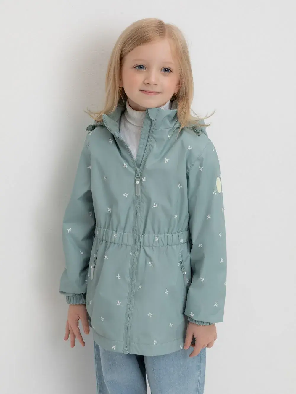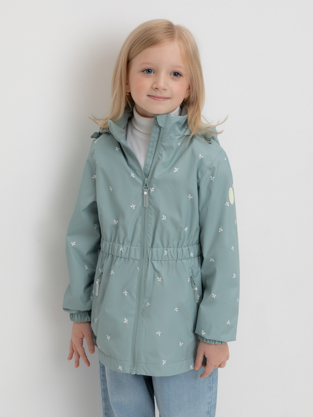 Ветровка для девочки из мембранной ткани с дополнительной тефлоновой обработкой. Верхняя мембранная ткань 1000/1000 с тефлоновым покрытием отталкивает воду и грязь и обладает «дышащими» свойствами. Подкладка выполнена из флиса, 100% полиэстер. У изделия предусмотрена защита подбородка. Несъемный капюшон регулируется с помощью эластичного шнура со стопперами. Низ рукавов и пояс изделия имеют эластичные резинки для лучшего прилегания. Во всех изделиях верхнего ассортимента для безопасности ребенка предусмотрены светоотражающие элементы.