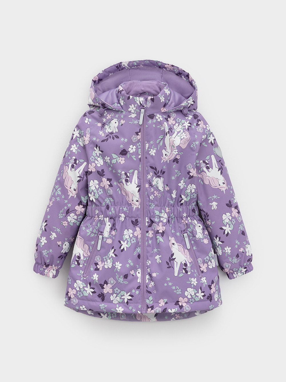 Демисезонная куртка для девочки с утеплителем SEE®: 120 г/м2. Выполнена из мембранной ткани с тефлоновой обработкой. Данный вид обработки предохраняет изделие от загрязнения и хорошо отталкивает влагу. Подклад из 100% полиэстера. Куртка застёгивается на молнию, предусмотрена защита подбородка. Несъёмный капюшон имеет эластичную утяжку со стопперами. Низ рукавов на эластичной резинке для лучшего прилегания. Утяжка по талии обеспечивает идеальную посадку по фигуре. По бокам два кармана. Во всех изделиях верхнего ассортимента для безопасности ребёнка предусмотрены светоотражающие элементы.