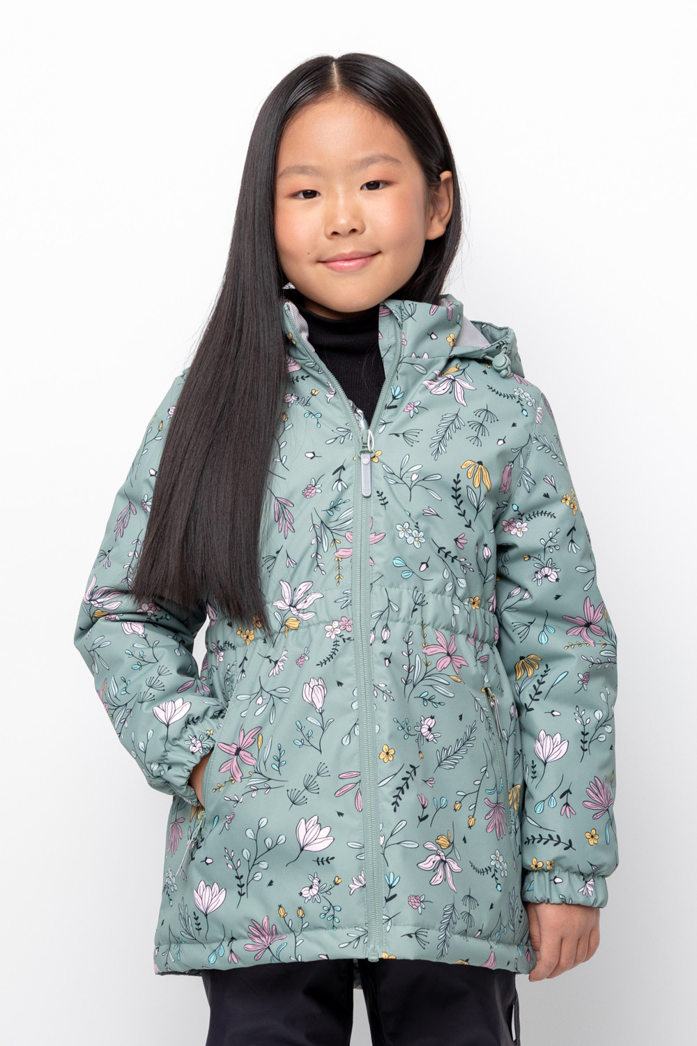 Демисезонная куртка для девочки с утеплителем SEE®: 120 г/м2. Выполнена из мембранной ткани с тефлоновой обработкой. Данный вид обработки предохраняет изделие от загрязнения и хорошо отталкивает влагу. Подклад из 100% полиэстера. Куртка застёгивается на молнию, предусмотрена защита подбородка. Несъёмный капюшон имеет эластичную утяжку со стопперами. Низ рукавов на эластичной резинке для лучшего прилегания. Утяжка по талии обеспечивает идеальную посадку по фигуре. По бокам два кармана. Во всех изделиях верхнего ассортимента для безопасности ребёнка предусмотрены светоотражающие элементы.