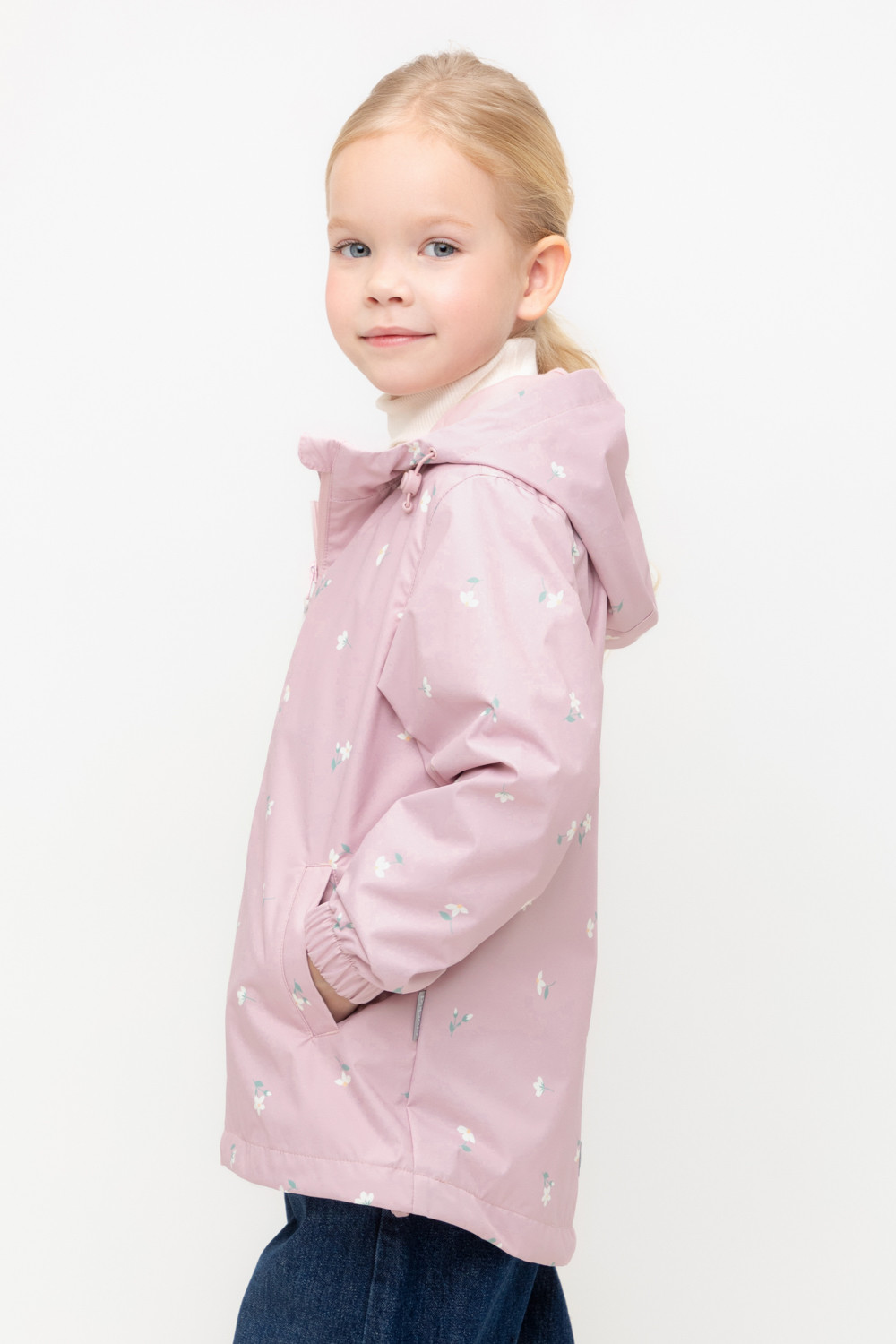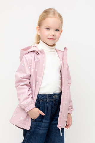 Ветровка для девочки из мембранной ткани с дополнительной тефлоновой обработкой. Верхняя мембранная ткань 1000/1000 с тефлоновым покрытием отталкивает воду и грязь и обладает «дышащими» свойствами. Подкладка выполнена из 100% хлопка. У изделия предусмотрена защита подбородка. Несъемный капюшон регулируется с помощью эластичного шнура со стопперами. Низ рукавов имеет эластичную резинку для лучшего прилегания. Во всех изделиях верхнего ассортимента для безопасности ребенка предусмотрены светоотражающие элементы.
