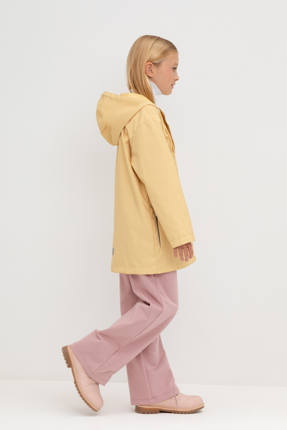 Ветровка для девочки из мембранной ткани с дополнительной тефлоновой обработкой. Верхняя мембранная ткань 1000/1000 с тефлоновым покрытием отталкивает воду и грязь и обладает «дышащими» свойствами. Подкладка выполнена из 100% полиэстера. У изделия предусмотрена защита подбородка. Несъемный капюшон регулируется с помощью эластичного шнура со стопперами. Манжеты на резинке регулируются по ширине с помощью липучек. Во всех изделиях верхнего ассортимента для безопасности ребенка предусмотрены светоотражающие элементы.