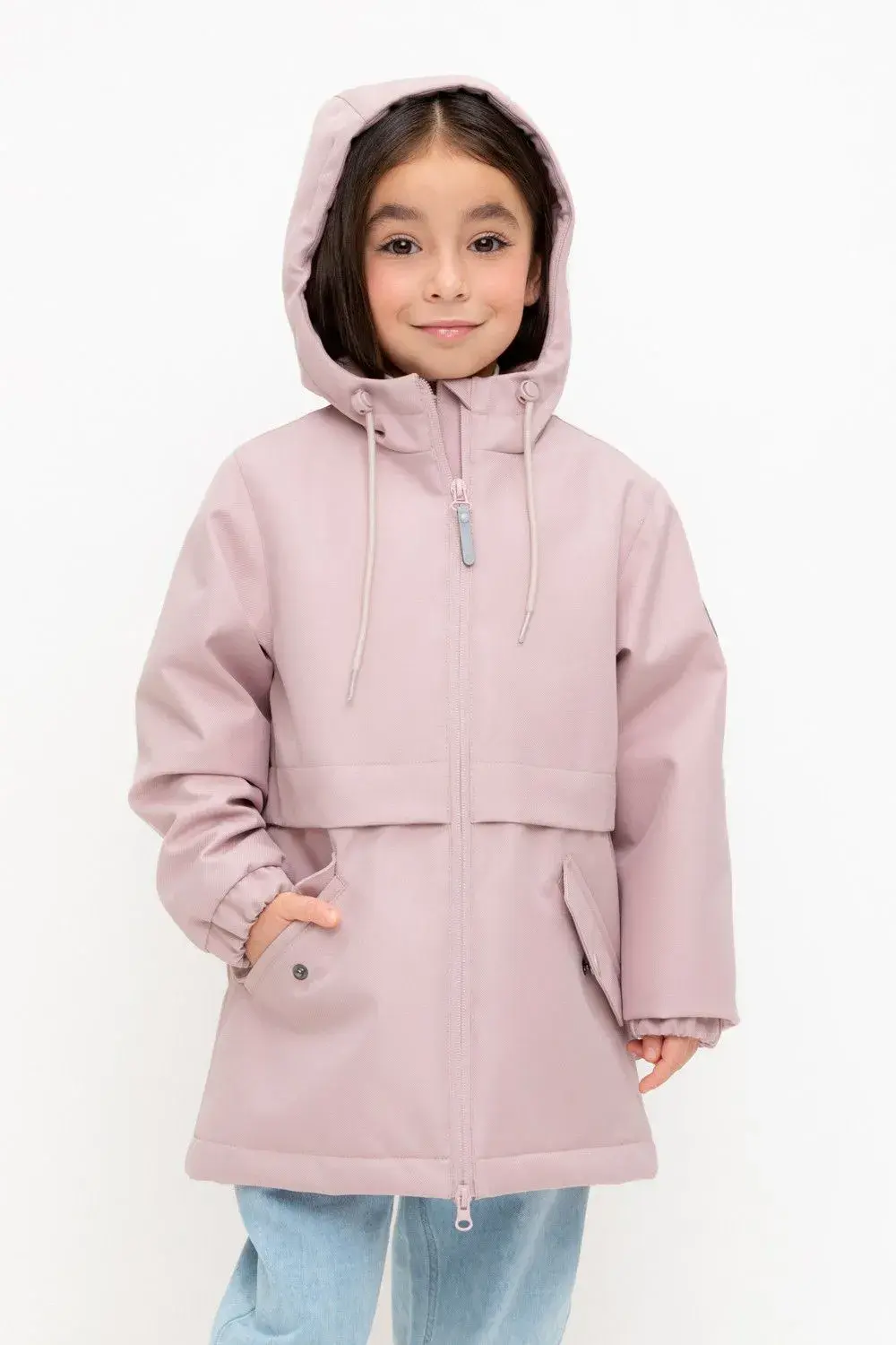 Демисезонная куртка для девочки с утеплителем SEE®: 120 г/м2. Выполнена из мембранной ткани с дополнительной тефлоновой обработкой. Данный вид обработки предохраняет изделие от загрязнения и лучше отводит влагу. Подклад из 100% полиэстера. У изделия предусмотрена защита подбородка. Несъемный капюшон имеет эластичную утяжку со стопперами. Низ рукавов на эластичной резинке для лучшего прилегания. На талии утяжка при помощи шнура со стопперами. Во всех изделиях верхнего ассортимента для безопасности ребенка предусмотрены светоотражающие элементы.