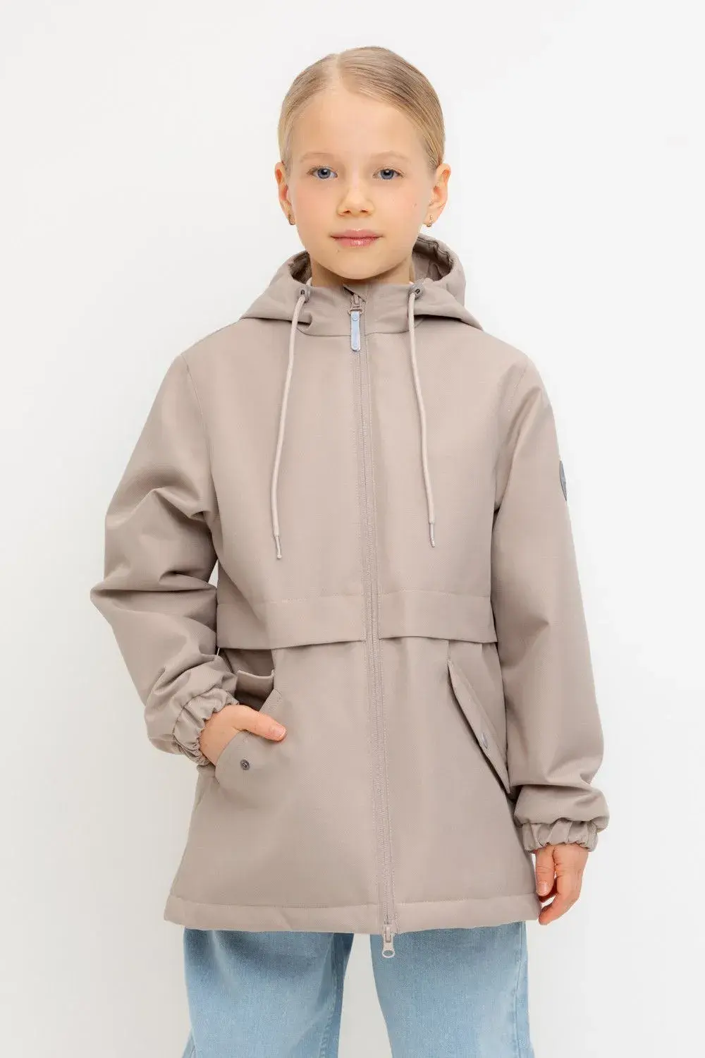 Демисезонная куртка для девочки с утеплителем SEE®: 120 г/м2. Выполнена из мембранной ткани с дополнительной тефлоновой обработкой. Данный вид обработки предохраняет изделие от загрязнения и лучше отводит влагу. Подклад из 100% полиэстера. У изделия предусмотрена защита подбородка. Несъемный капюшон имеет эластичную утяжку со стопперами. Низ рукавов на эластичной резинке для лучшего прилегания. На талии утяжка при помощи шнура со стопперами. Во всех изделиях верхнего ассортимента для безопасности ребенка предусмотрены светоотражающие элементы.