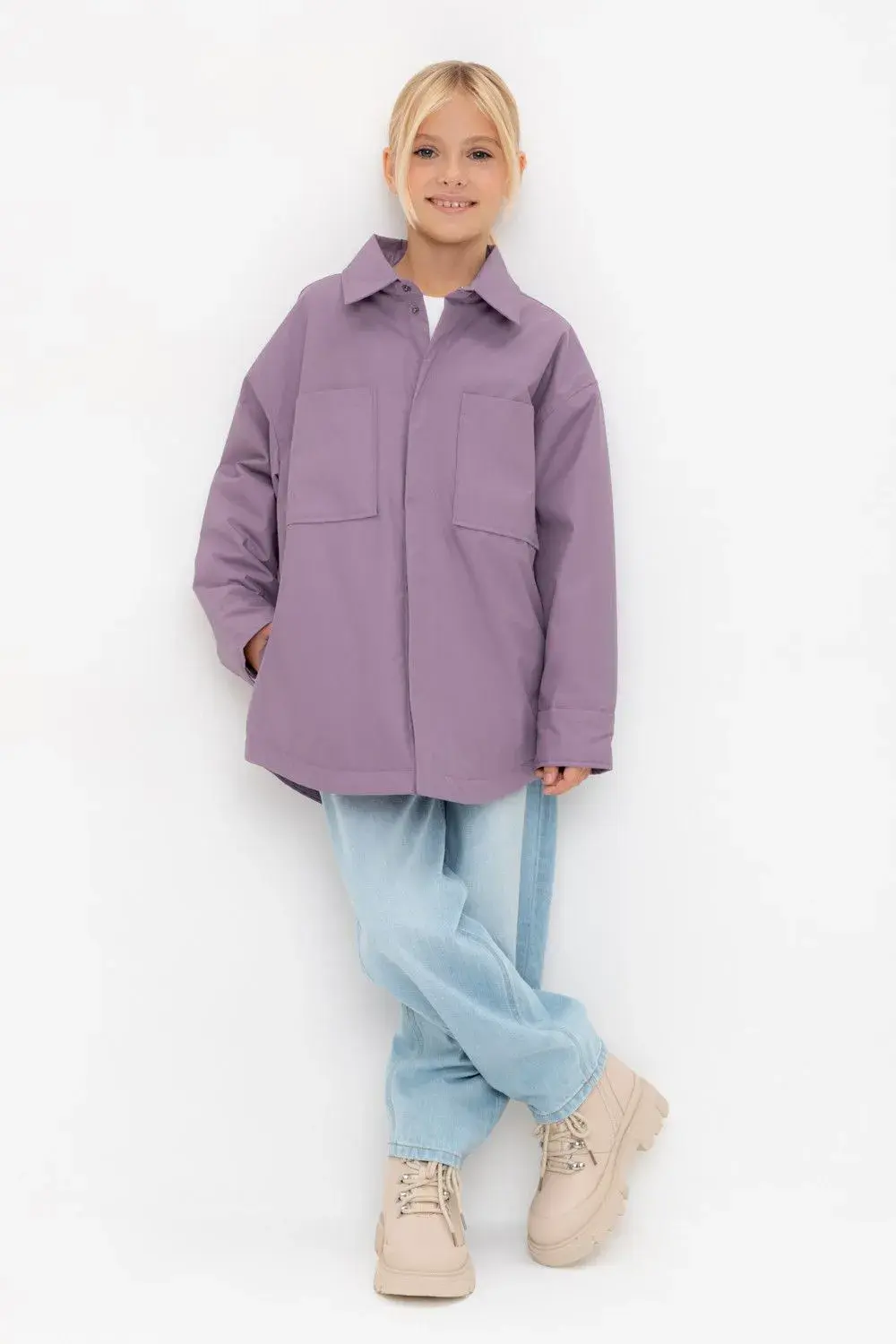 Куртка-рубашка для девочки с утеплителем SEE®: 60 г/м2. Выполнена из мембранной ткани с дополнительной тефлоновой обработкой. Данный вид обработки предохраняет изделие от загрязнения и лучше отводит влагу. Подклад из 100% полиэстера. Спереди застёгивается на потайные кнопки. На груди два накладных кармана. Во всех изделиях верхнего ассортимента для безопасности ребенка предусмотрены светоотражающие элементы.