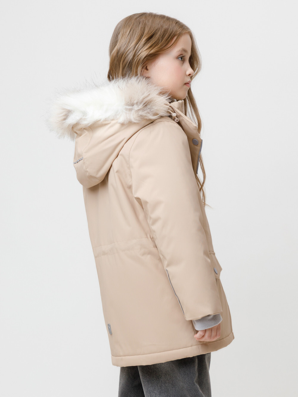 Зимняя куртка для девочки с утеплителем SEE®: 250 г/м2. Выполнена из мембранной ткани с дополнительной тефлоновой обработкой, которая предохраняет изделие от загрязнений и отталкивает влагу. Подклад выполнен из 100% полиэстера Tricot. Куртка застёгивается на молнию, предусмотрена защита подбородка. Съёмный капюшон на кнопках и липучках имеет отстёгивающийся искусственный мех на молнии и эластичную утяжку со стопперами. На рукавах мягкие внутренние манжеты. По бокам два кармана с клапанами на кнопках. Изнутри кулиска по талии для регулировки ширины куртки. Во всех изделиях верхнего ассортимента для безопасности ребёнка предусмотрены светоотражающие элементы.