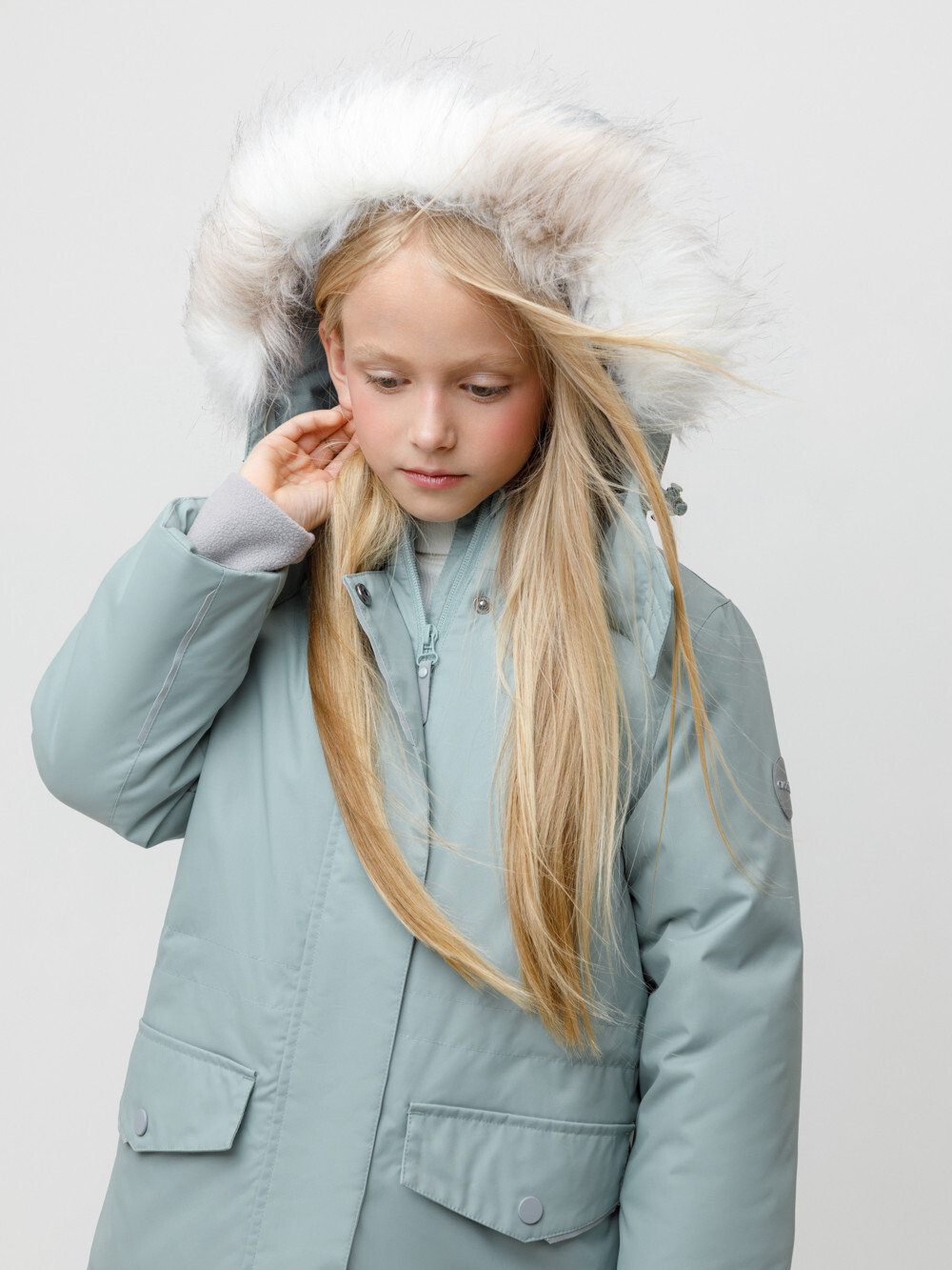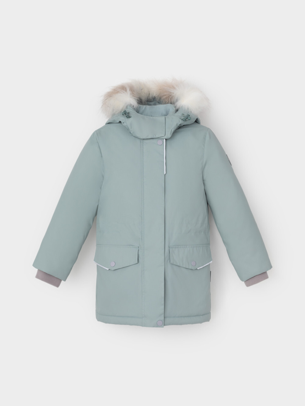 Зимняя куртка для девочки с утеплителем SEE®: 250 г/м2. Выполнена из мембранной ткани с дополнительной тефлоновой обработкой, которая предохраняет изделие от загрязнений и отталкивает влагу. Подклад выполнен из 100% полиэстера Tricot. Куртка застёгивается на молнию, предусмотрена защита подбородка. Съёмный капюшон на кнопках и липучках имеет отстёгивающийся искусственный мех на молнии и эластичную утяжку со стопперами. На рукавах мягкие внутренние манжеты. По бокам два кармана с клапанами на кнопках. Изнутри кулиска по талии для регулировки ширины куртки. Во всех изделиях верхнего ассортимента для безопасности ребёнка предусмотрены светоотражающие элементы.