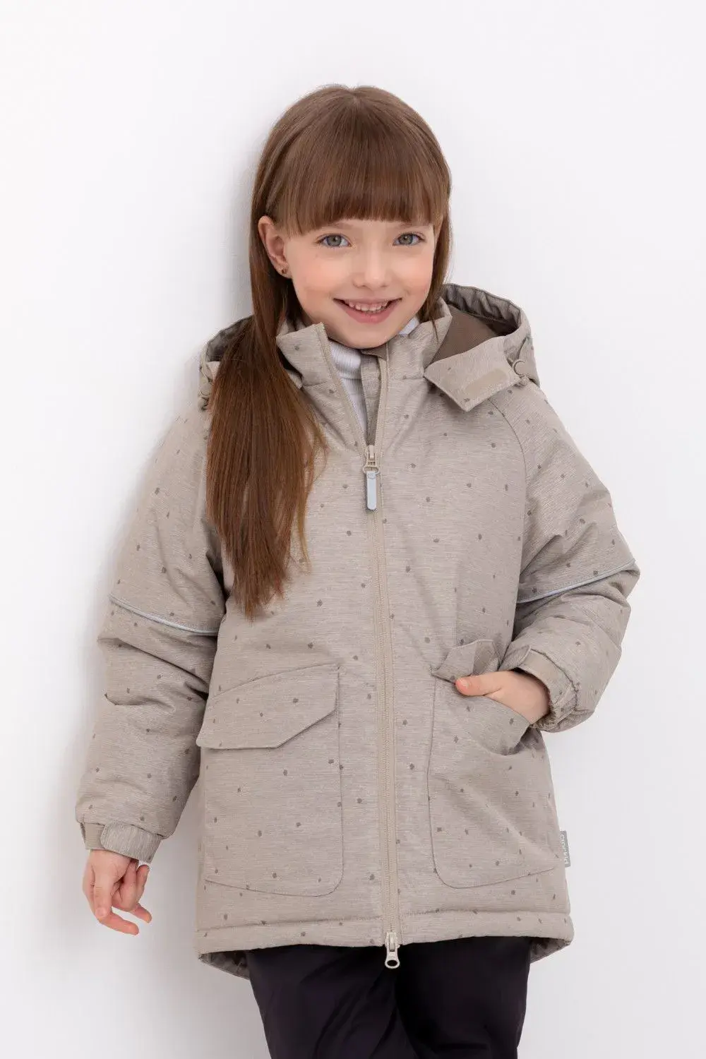 Куртка с утеплителем нового поколения Fellex®, 250 г/м2. • Мембранная ткань 5000/5000 покрыта тефлоновой пропиткой, отталкивающей воду и грязь, обладает "дышащими" свойствами и гарантирует идеальный воздухообмен. • Лёгкий утеплитель сохраняет тепло, позволяет активно двигаться, не сковывая движений. • Подкладка из полиэстера Tricot. • Несъёмный капюшон с эластичными вставками по бокам , украшен ушками и принтом • Внутри ветрозащитная планка. • Высокий воротник защищает от ветра. • Предусмотрен ограничитель молнии. • Манжеты регулируются по ширине с помощью липучек. • Удлинённая спинка надёжно прикрывает спину. • Светоотражающие элементы служат для дополнительной безопасности в темноте. • Спереди по бокам два накладных кармана с клапанами на магнитных кнопках. • Внутренняя размерная этикетка с местом для имени