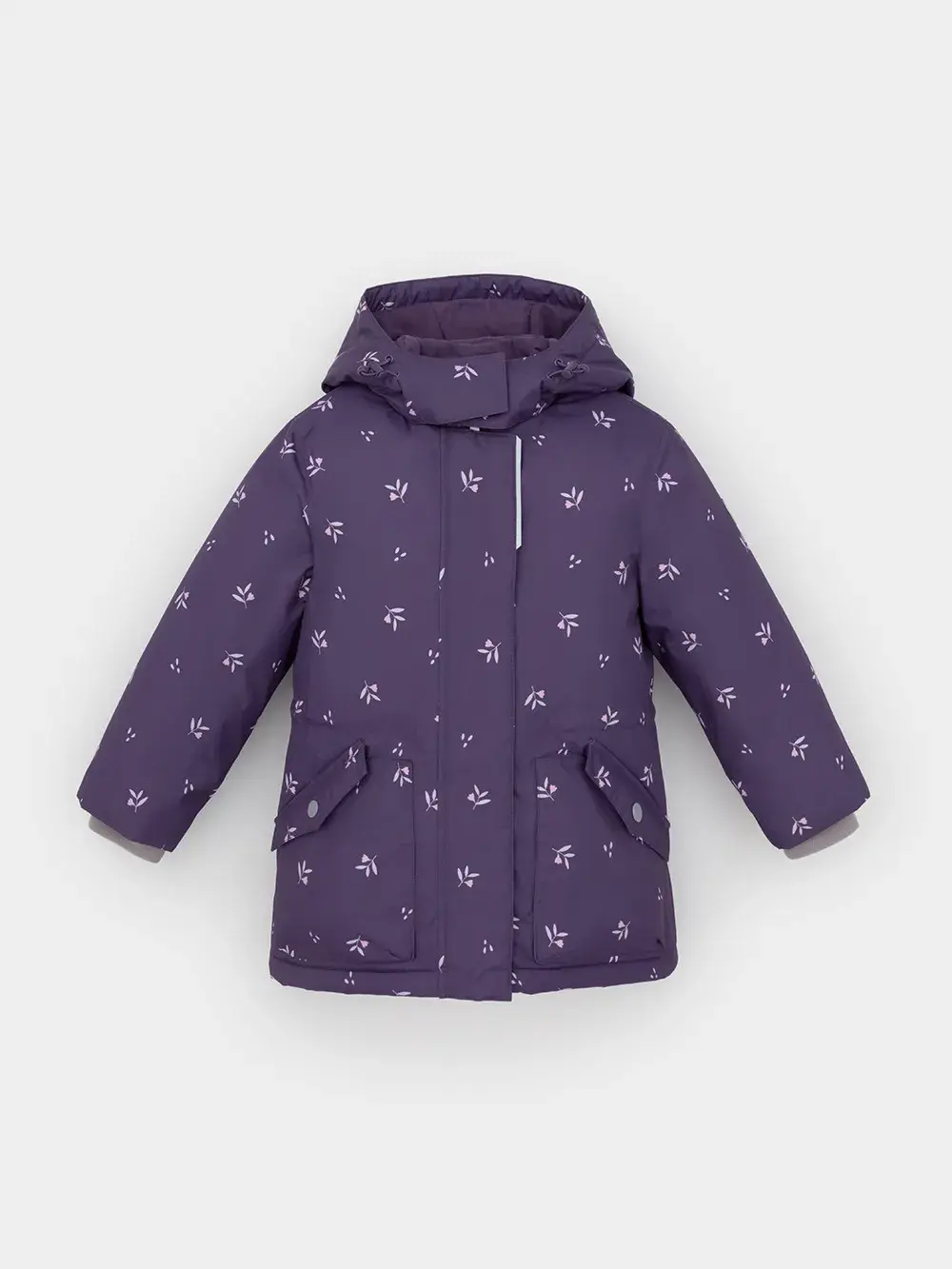 Зимняя куртка для девочки с утеплителем SEE®: 300 г/м2. Выполнена из мембранной ткани с дополнительной тефлоновой обработкой, которая предохраняет изделие от загрязнений и отталкивает влагу. Подклад выполнен из 100% полиэстера Tricot. Куртка застёгивается на молнию, предусмотрена защита подбородка. Съёмный капюшон на кнопках и липучках имеет эластичную утяжку со стопперами. На рукавах мягкие внутренние манжеты. По бокам два кармана с клапанами на кнопках. Изнутри кулиска по талии для регулировки ширины куртки. Во всех изделиях верхнего ассортимента для безопасности ребёнка предусмотрены светоотражающие элементы.