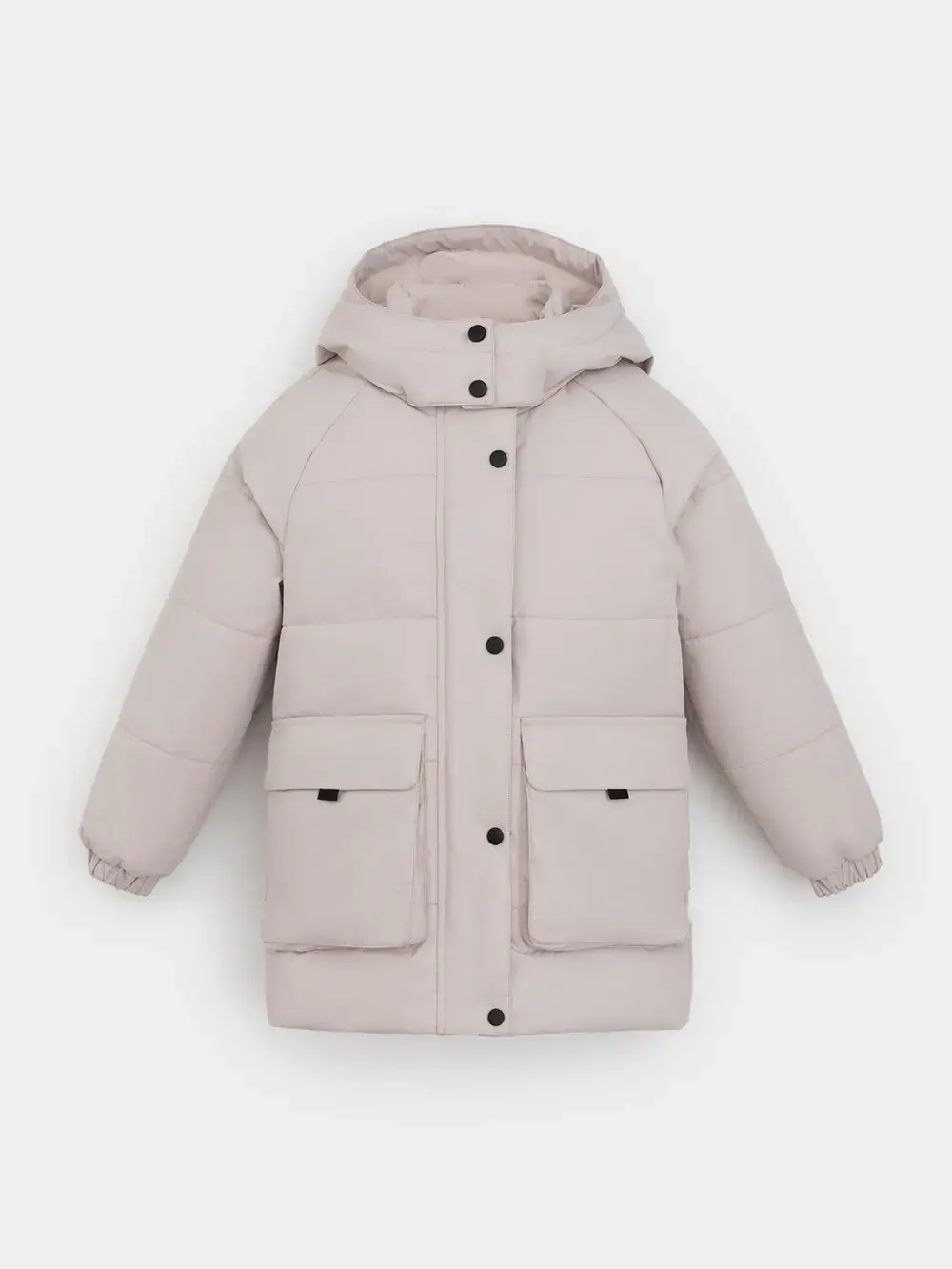 Зимняя куртка для девочки с утеплителем SEE®: 300 г/м2. Выполнена из мембранной ткани с дополнительной тефлоновой обработкой, которая предохраняет изделие от загрязнений и отталкивает влагу. Подклад выполнен из 100% полиэстера Tricot. куртка застёгивается на молнию, предусмотрена защита подбородка. Вшитый капюшон застёгивается на кнопки. На рукавах мягкие манжеты. По бокам два кармана с клапанами. Во всех изделиях верхнего ассортимента для безопасности ребёнка предусмотрены светоотражающие элементы.