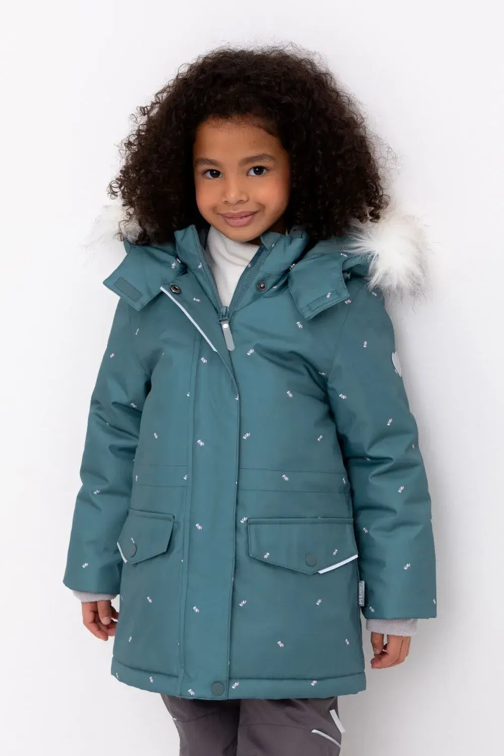 • Съемный капюшон на липучках с отстегивающимся искусственным мехом и эластичным шнурком.