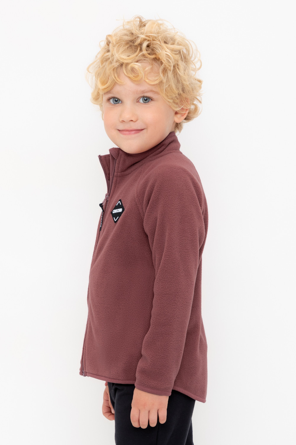 Флисовая куртка для мальчика. У изделия удлинённая спинка, высокий воротник, предусмотрена защита шеи и подбородка. Рукава-реглан и низ изделия обработаны эластичным кантом для лучшего прилегания к телу, по бокам два кармана. Куртка сохраняет цвет и форму после многократных стирок.