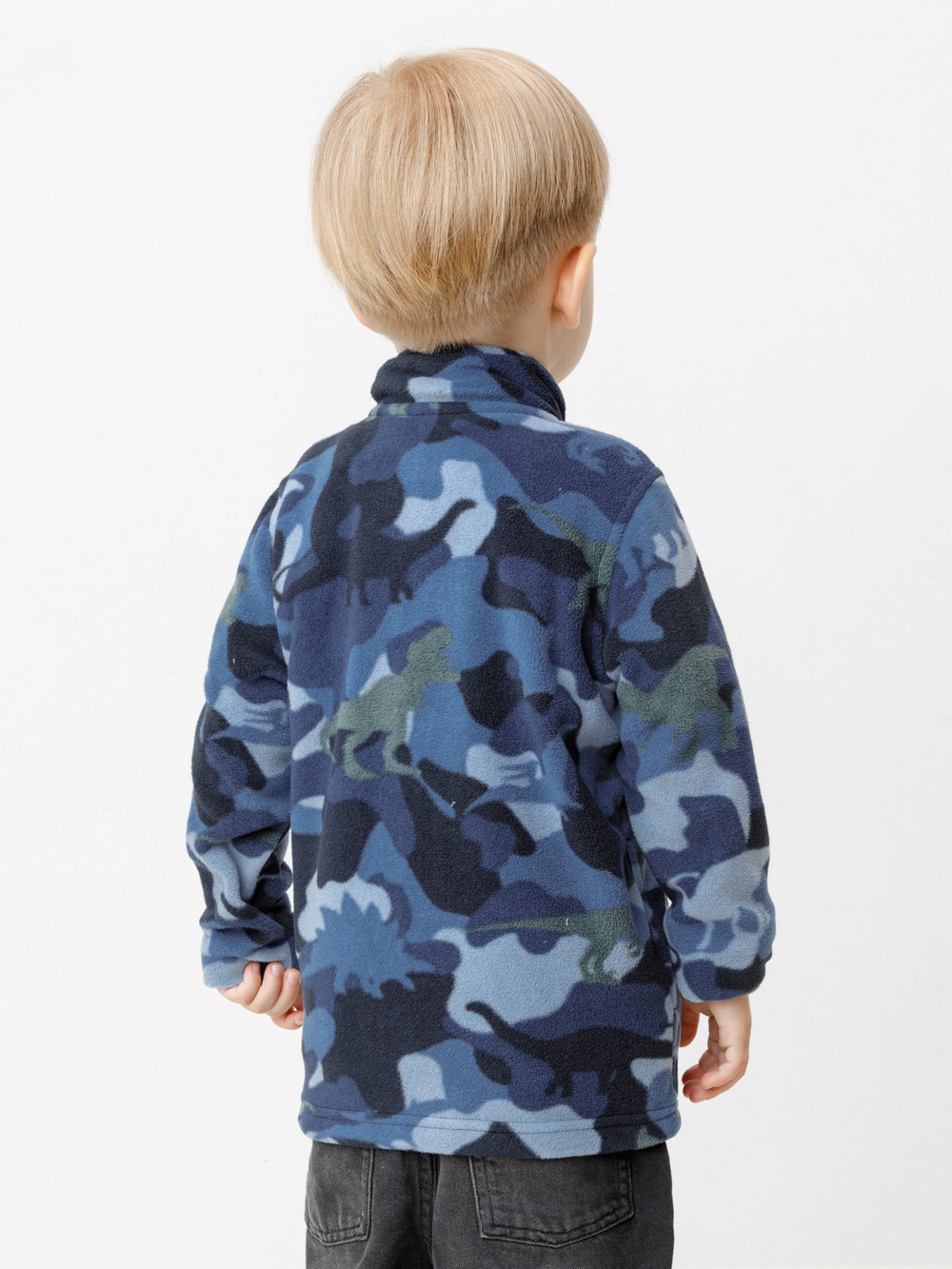 Флисовая куртка для мальчика. У изделия высокий воротник и застёжка на молнию с мягкой защитой шеи и подбородка. По бокам два кармана. Оригинальная набивка выполнена из стойких гипоаллергенных текстильных красителей. Куртка сохраняет цвет и форму после многократных стирок.