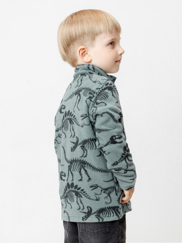 Флисовая куртка для мальчика. У изделия высокий воротник и застёжка на молнию с мягкой защитой шеи и подбородка. По бокам два кармана. Оригинальная набивка выполнена из стойких гипоаллергенных текстильных красителей. Куртка сохраняет цвет и форму после многократных стирок.