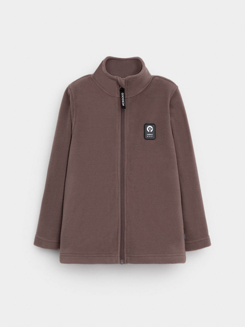 Флисовая куртка для мальчика. У изделия высокий воротник и застёжка на молнию с мягкой защитой шеи и подбородка. По бокам два кармана. Куртка сохраняет цвет и форму после многократных стирок.
