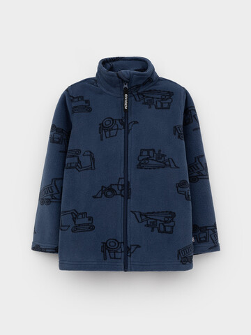 Флисовая куртка для мальчика. У изделия высокий воротник и застёжка на молнию с мягкой защитой шеи и подбородка. По бокам два кармана. Оригинальная набивка выполнена из стойких гипоаллергенных текстильных красителей. Куртка сохраняет цвет и форму после многократных стирок.