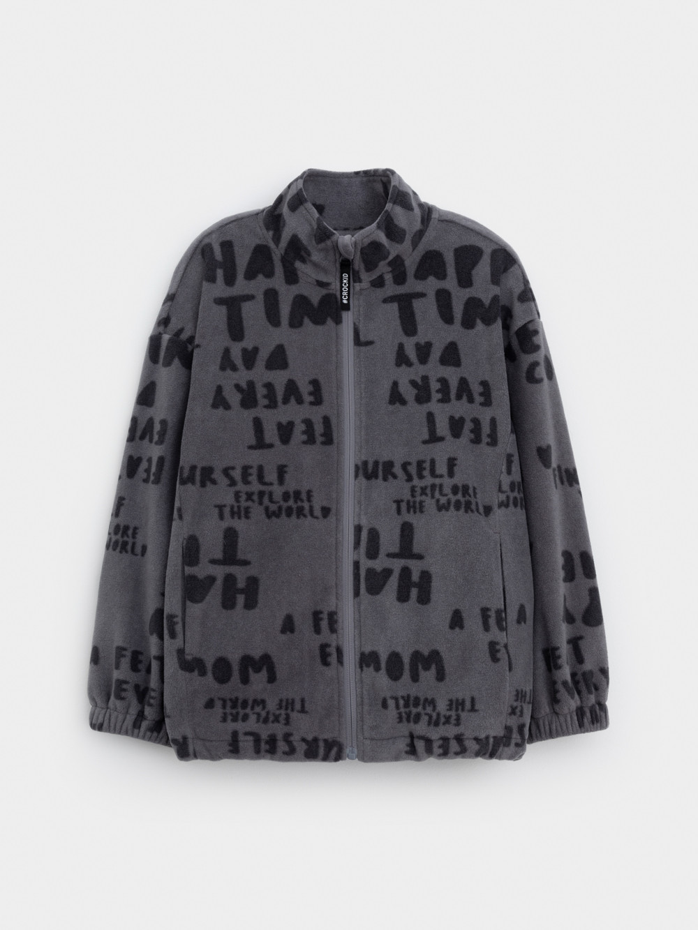 Флисовая куртка для мальчика. У изделия высокий воротник и застёжка на молнию с мягкой защитой шеи и подбородка. По бокам два кармана. Рукава собраны на резинку. Низ изделия регулируется по ширине с помощью эластичной утяжки со стопперами. Куртка сохраняет цвет и форму после многократных стирок.