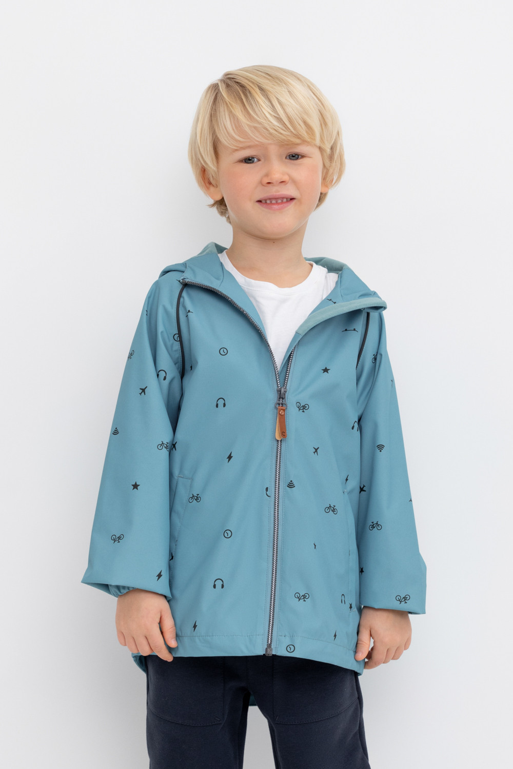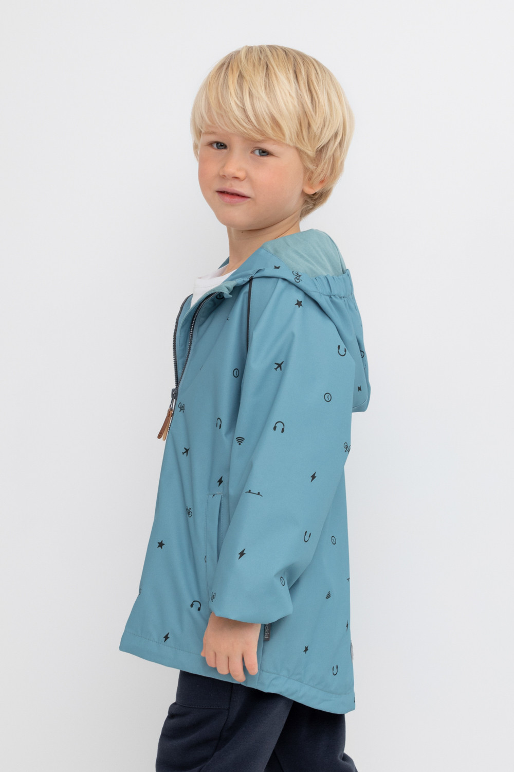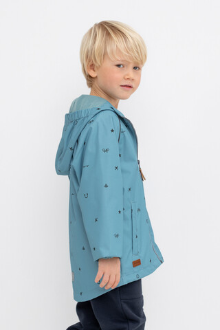 Ветровка для мальчика из мембранной ткани с дополнительной тефлоновой обработкой. Верхняя мембранная ткань 1000/1000 с тефлоновым покрытием отталкивает воду и грязь и обладает «дышащими» свойствами. Подкладка выполнена 60% хлопка и 40% полиэстера. У изделия предусмотрена защита подбородка. Несъемный капюшон регулируется с помощью эластичного шнура со стопперами. Низ рукавов имеет эластичную резинку для лучшего прилегания. Во всех изделиях верхнего ассортимента для безопасности ребенка предусмотрены светоотражающие элементы.