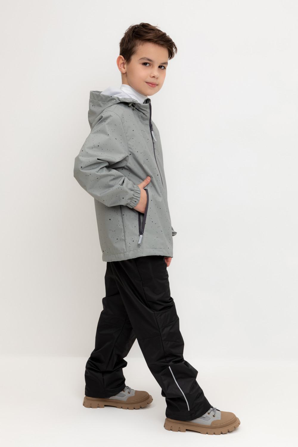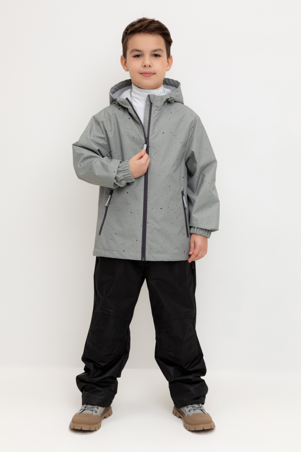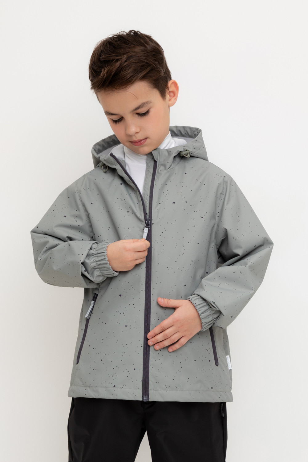 Ветровка для мальчика из мембранной ткани с дополнительной тефлоновой обработкой. Верхняя мембранная ткань 1000/1000 с тефлоновым покрытием отталкивает воду и грязь и обладает «дышащими» свойствами. Подкладка выполнена из сетки, 100% полиэстер. У изделия предусмотрена защита подбородка. Несъемный капюшон утягивается с помощью регулирующего шнура со стопперами. На рукавах эластичные манжеты. Низ изделия регулируется эластичной утяжкой со стопперами. Во всех изделиях верхнего ассортимента для безопасности ребенка предусмотрены светоотражающие элементы.